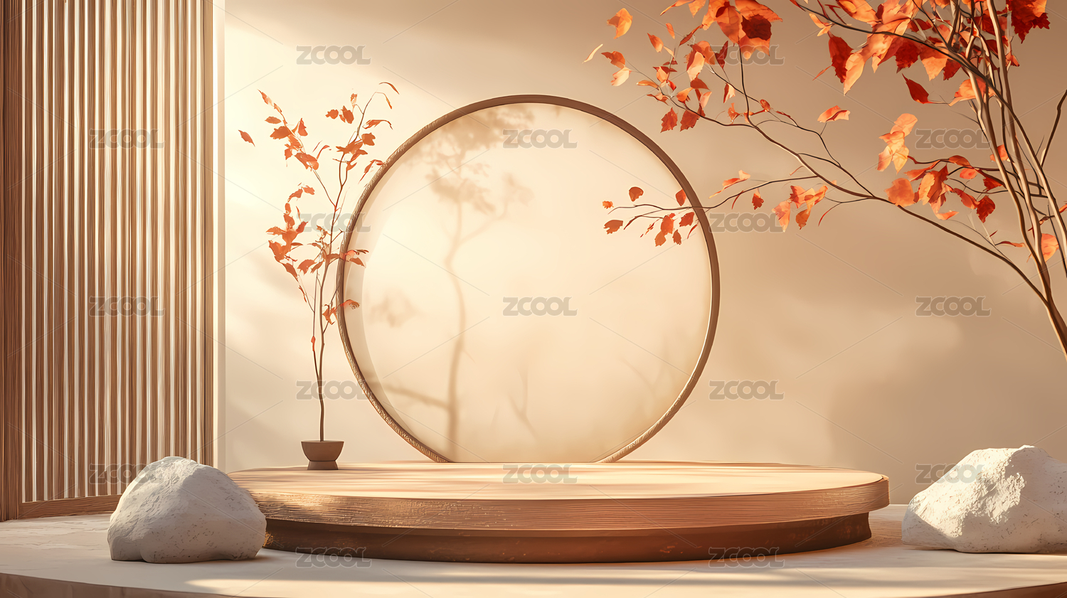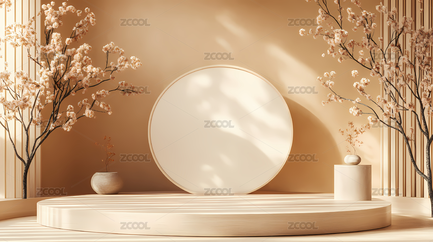 自然,和谐,现代,温暖,舞台,圆形,简洁,花卉,设计,优雅