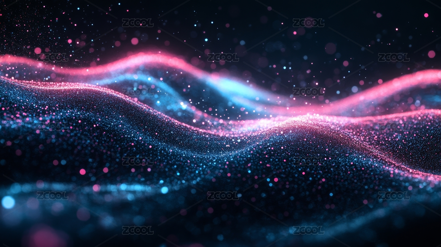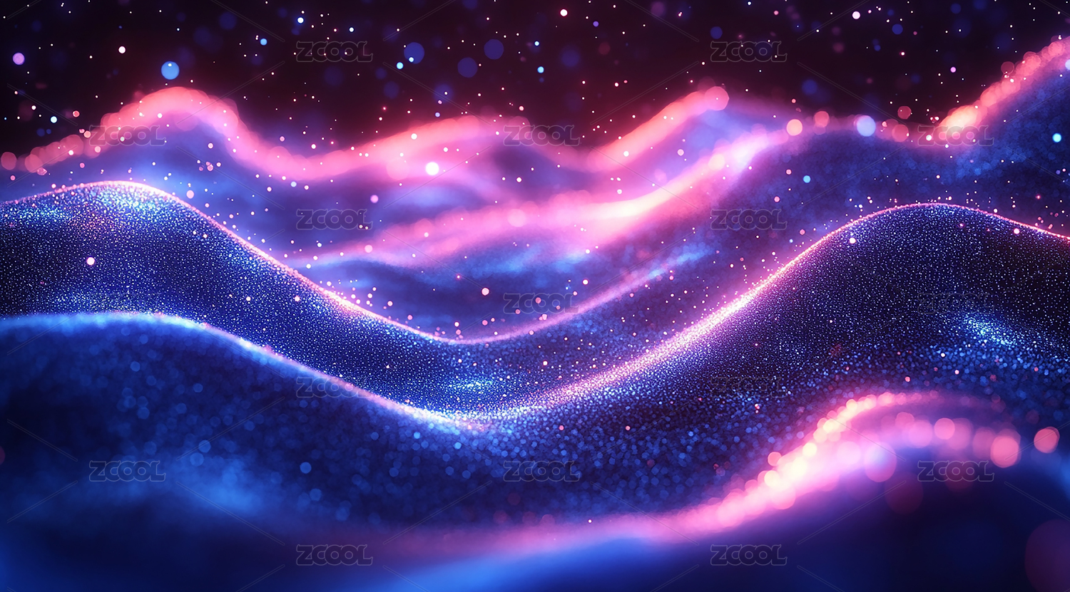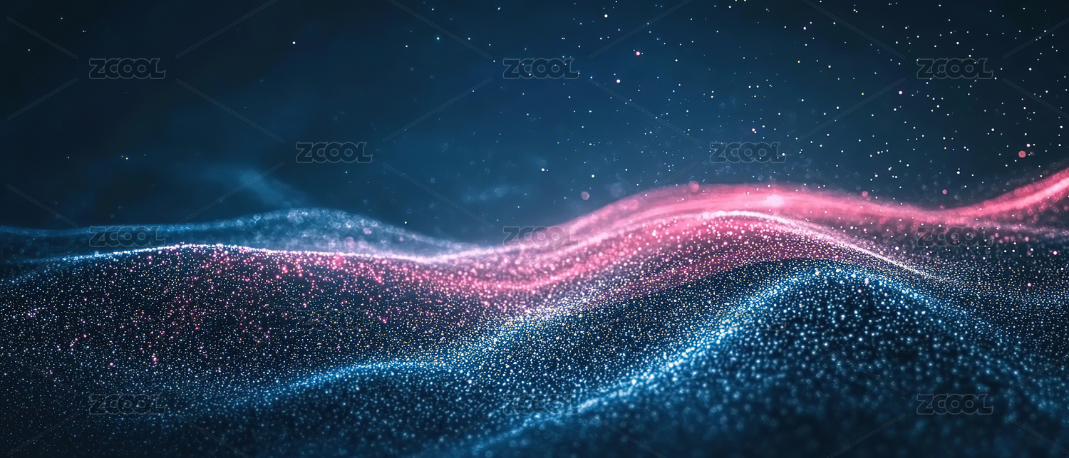 粉蓝波浪线条与光点粒子