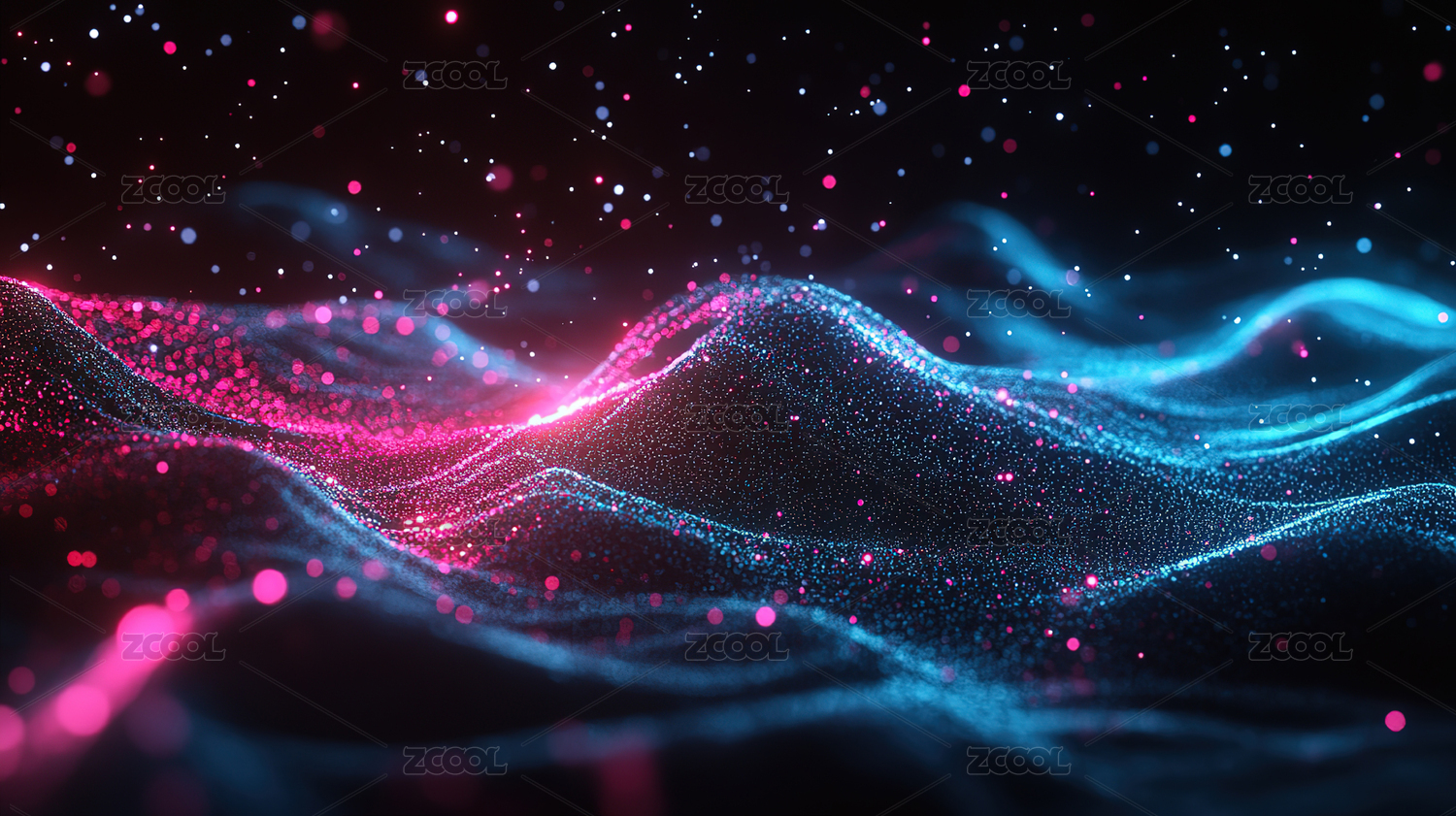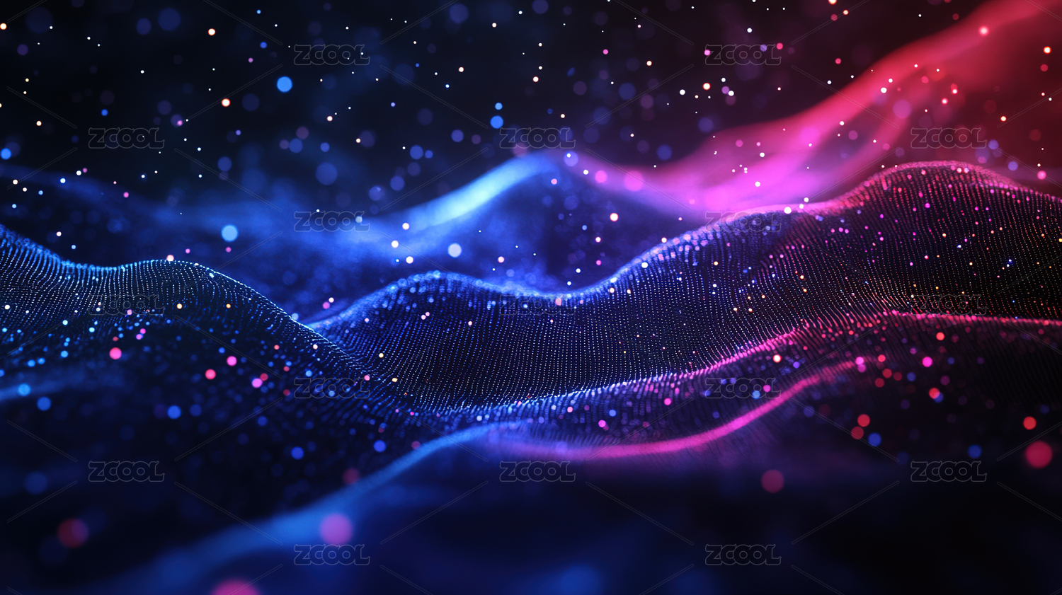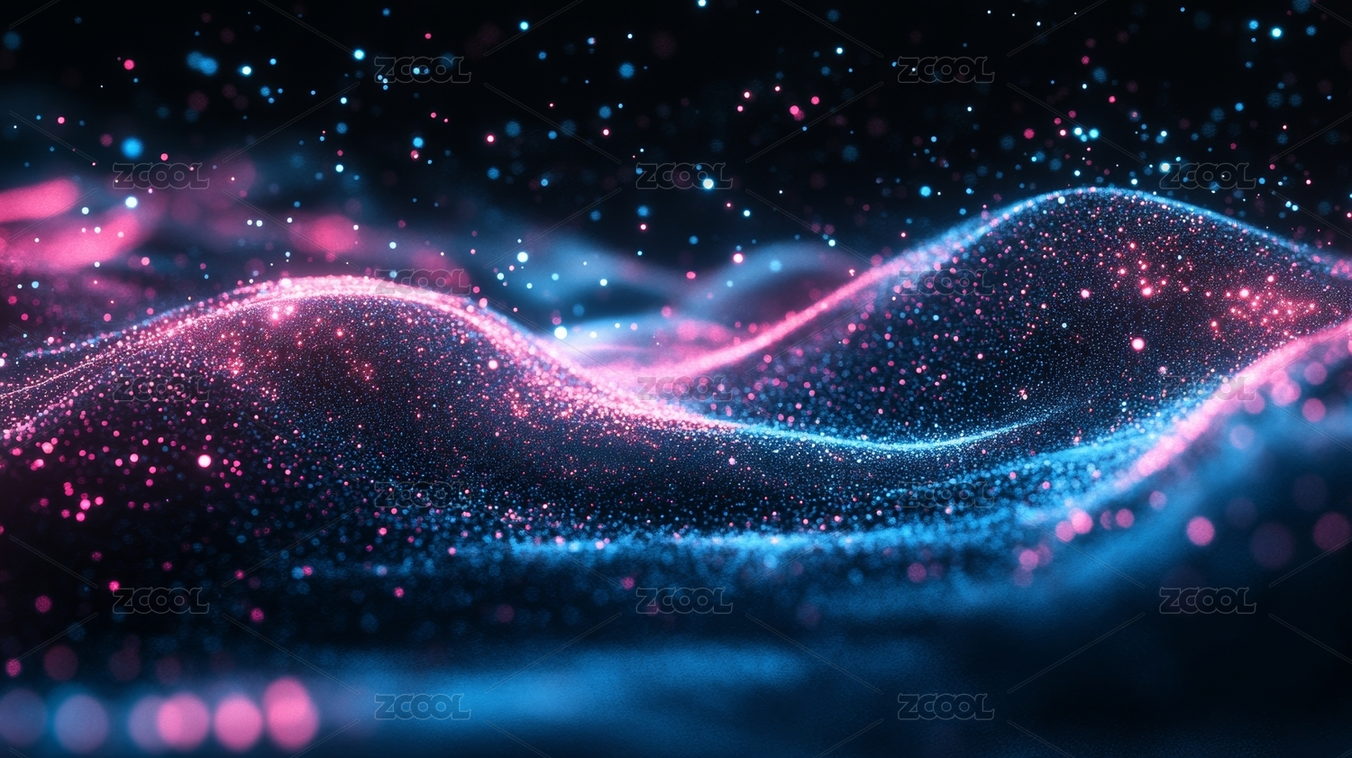 粉蓝波浪线条与光点粒子