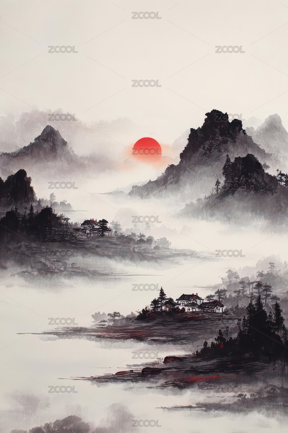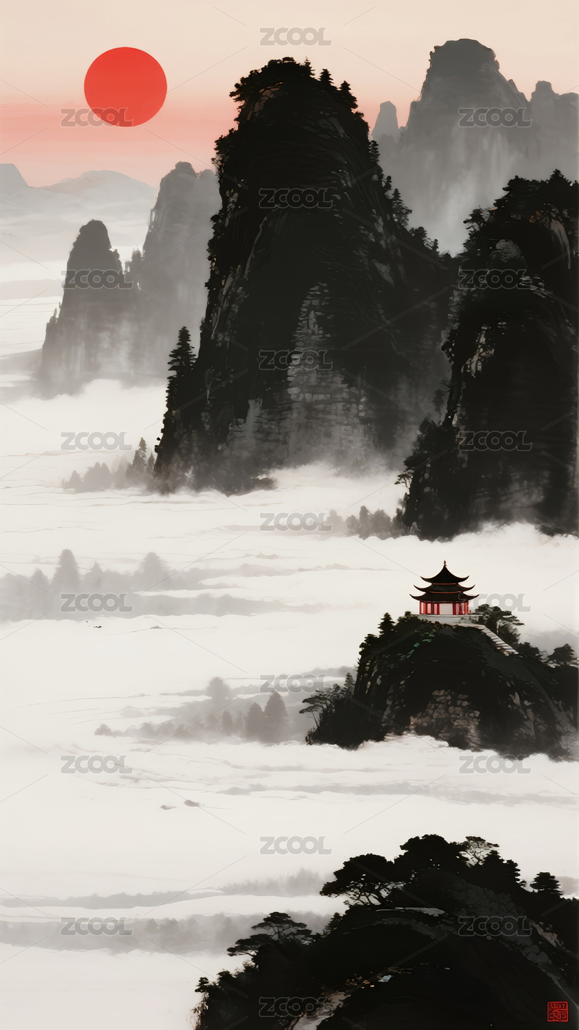 概念,抽象,中式,山水,金色,复古,传统,国风,中国风,金粉