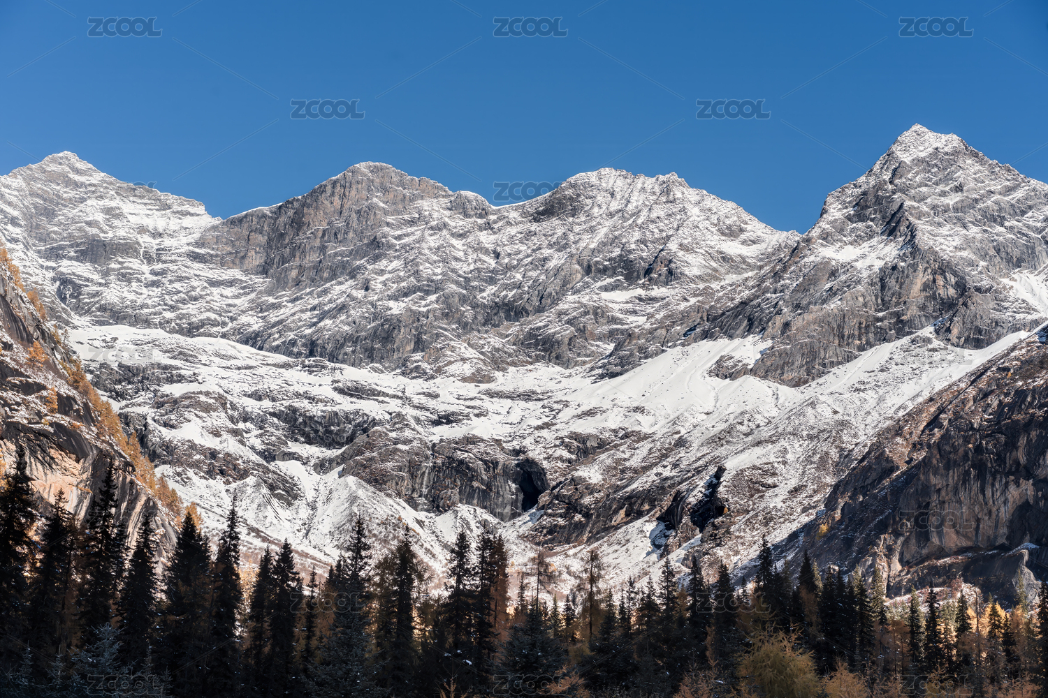 中国四川省四姑娘山红杉林雪山双桥沟布达拉峰