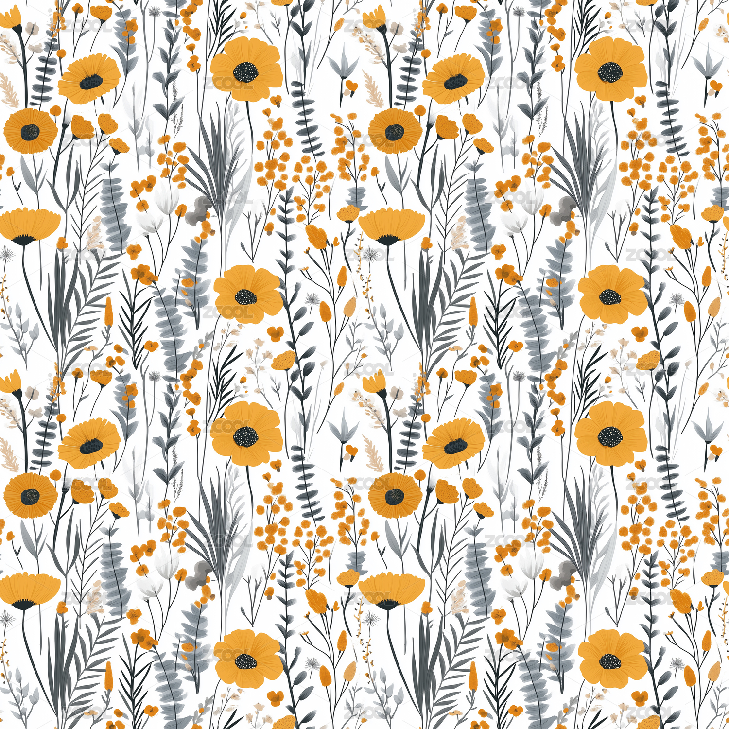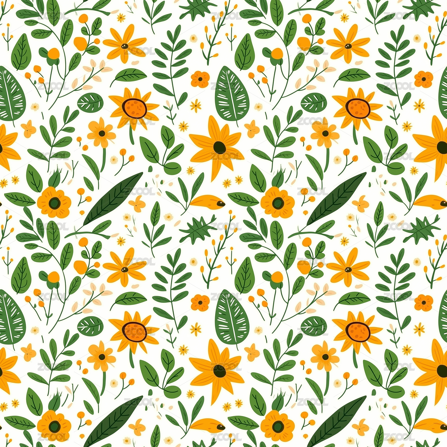 树叶与花朵无缝平铺四方连续纹样图案背景