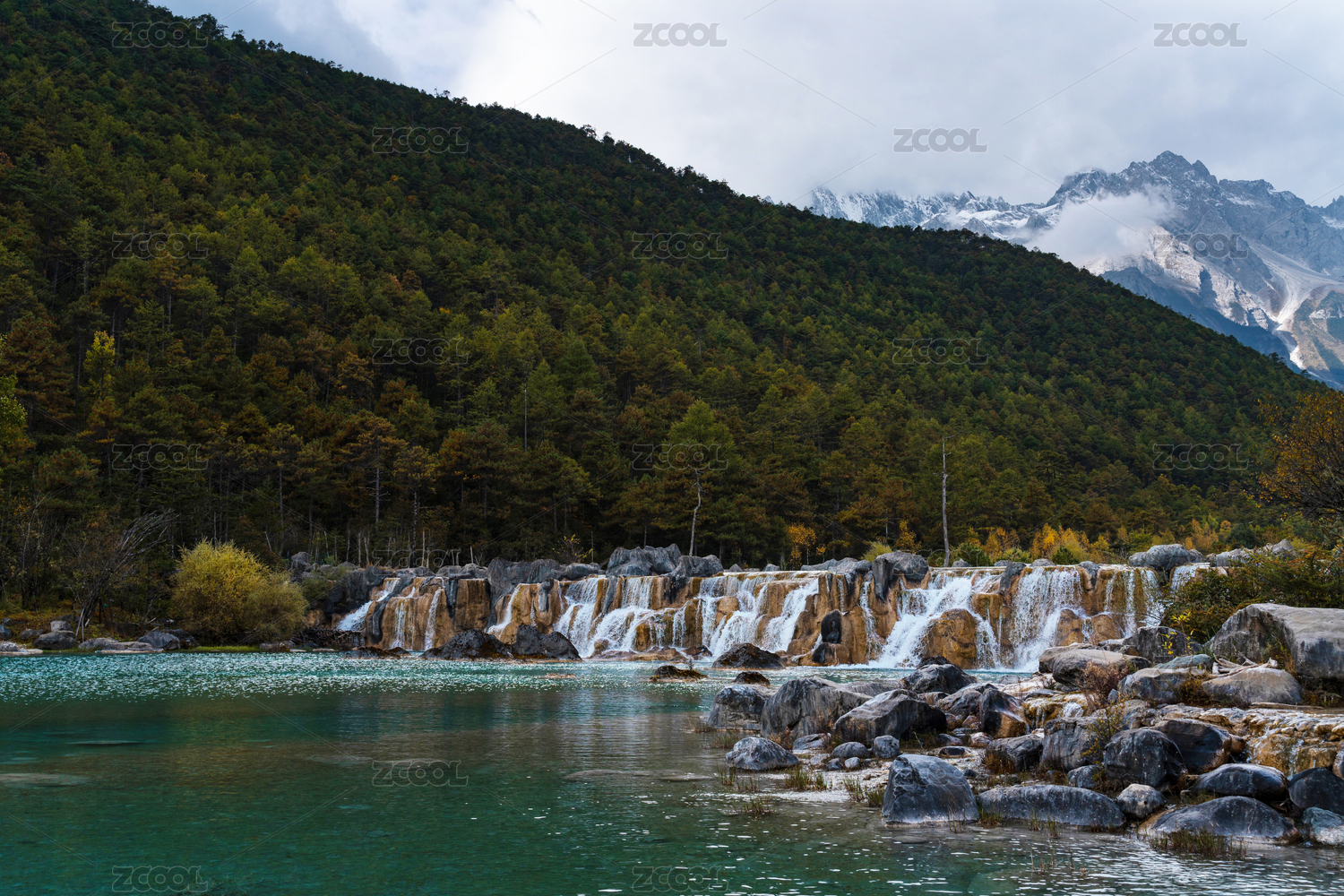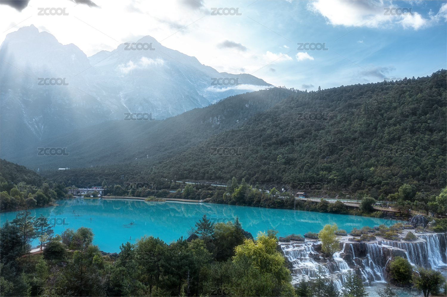 玉龙雪山,蓝月谷,瀑布,河流,雪山,山脉,山川,云南,自然,大自然