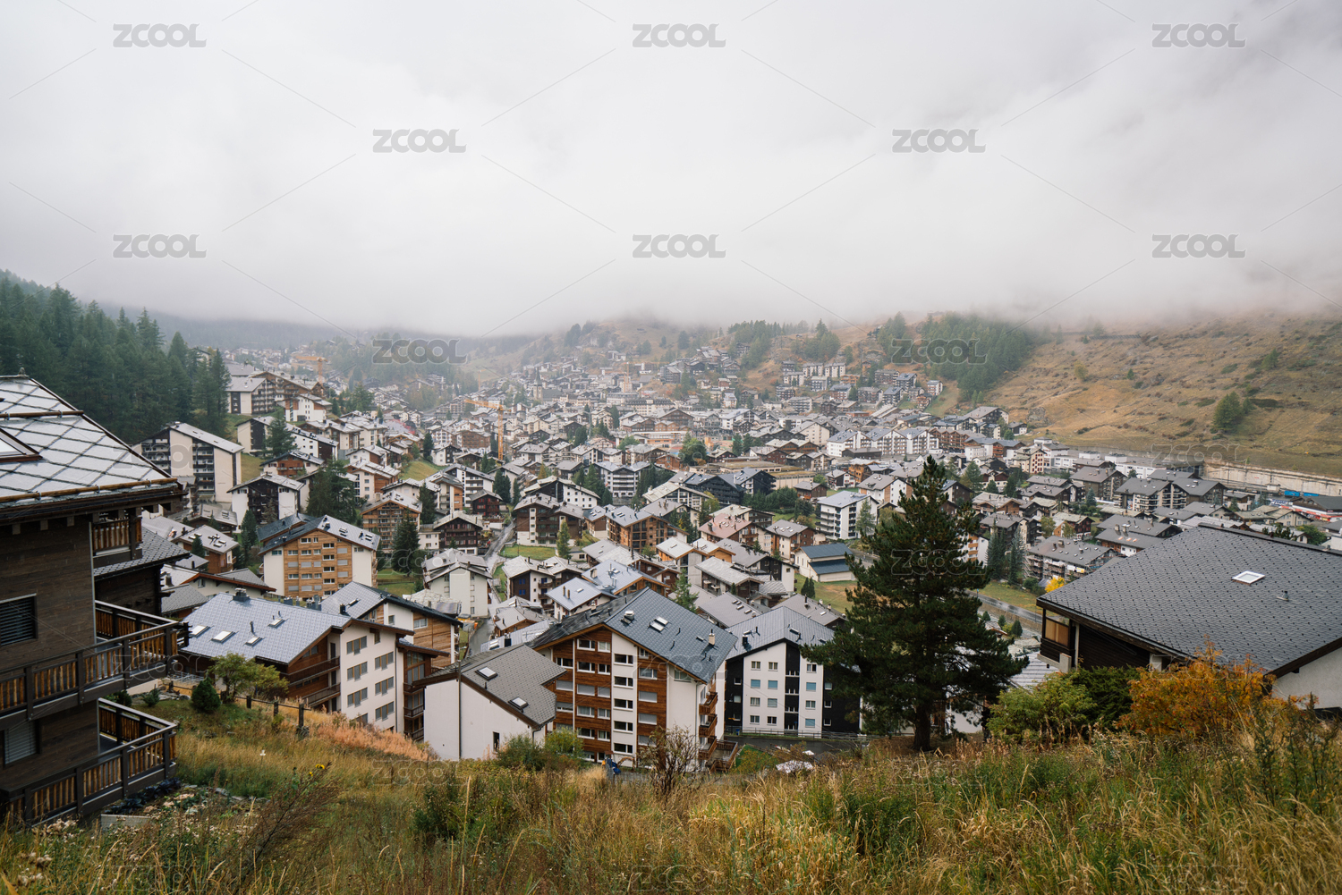 瑞士冰川之城采尔马特坐落在山谷云雾之中