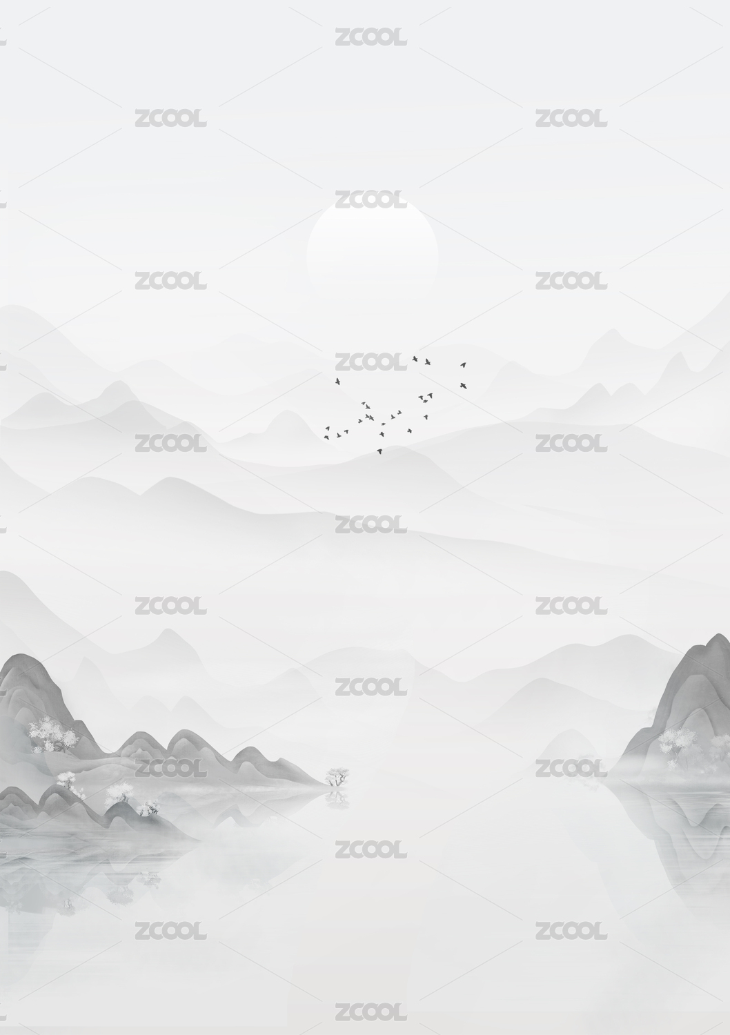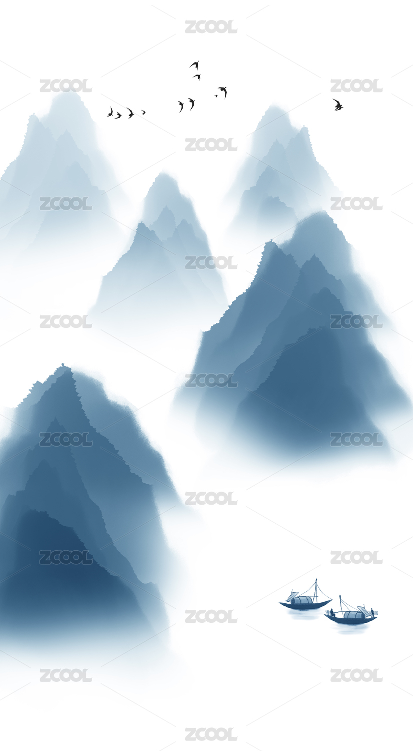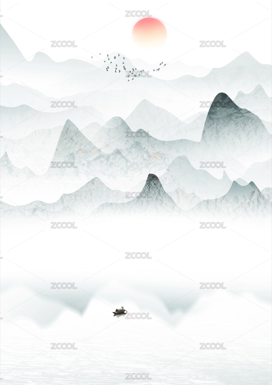 山水,水墨,山水画,高山,群山,雾霭,剪影,意境,雾,古风