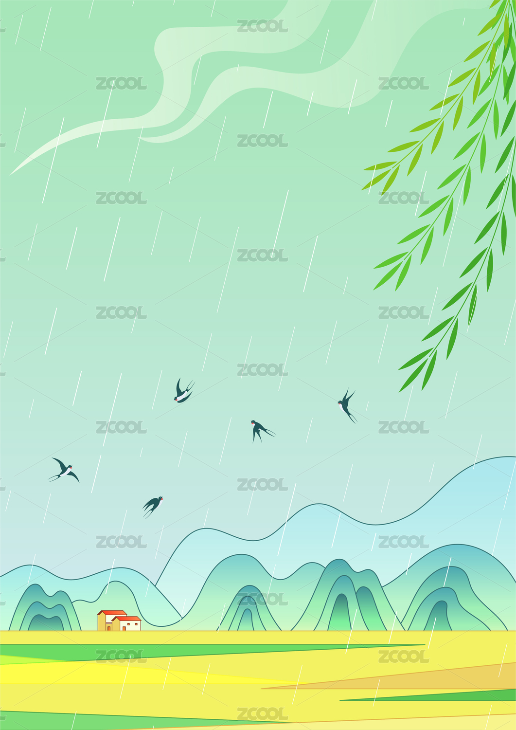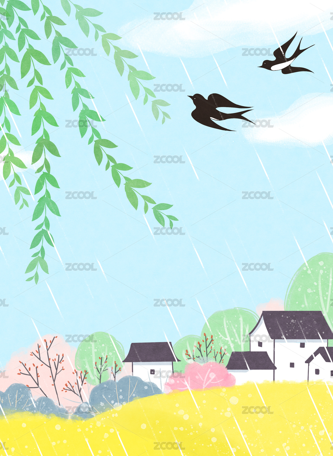 中国二十四节气雨水谷雨插画