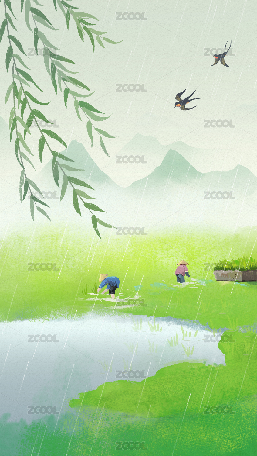 谷雨,节气,燕子,柳条,农忙,农民,插秧,农作,稻田,意境