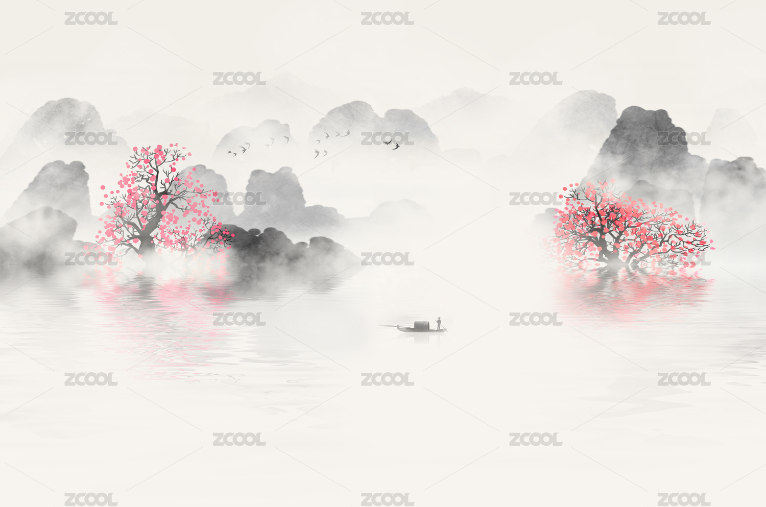中国风,山水画,装饰画,新中式,中式,水墨,自然,背景,国画,淡雅