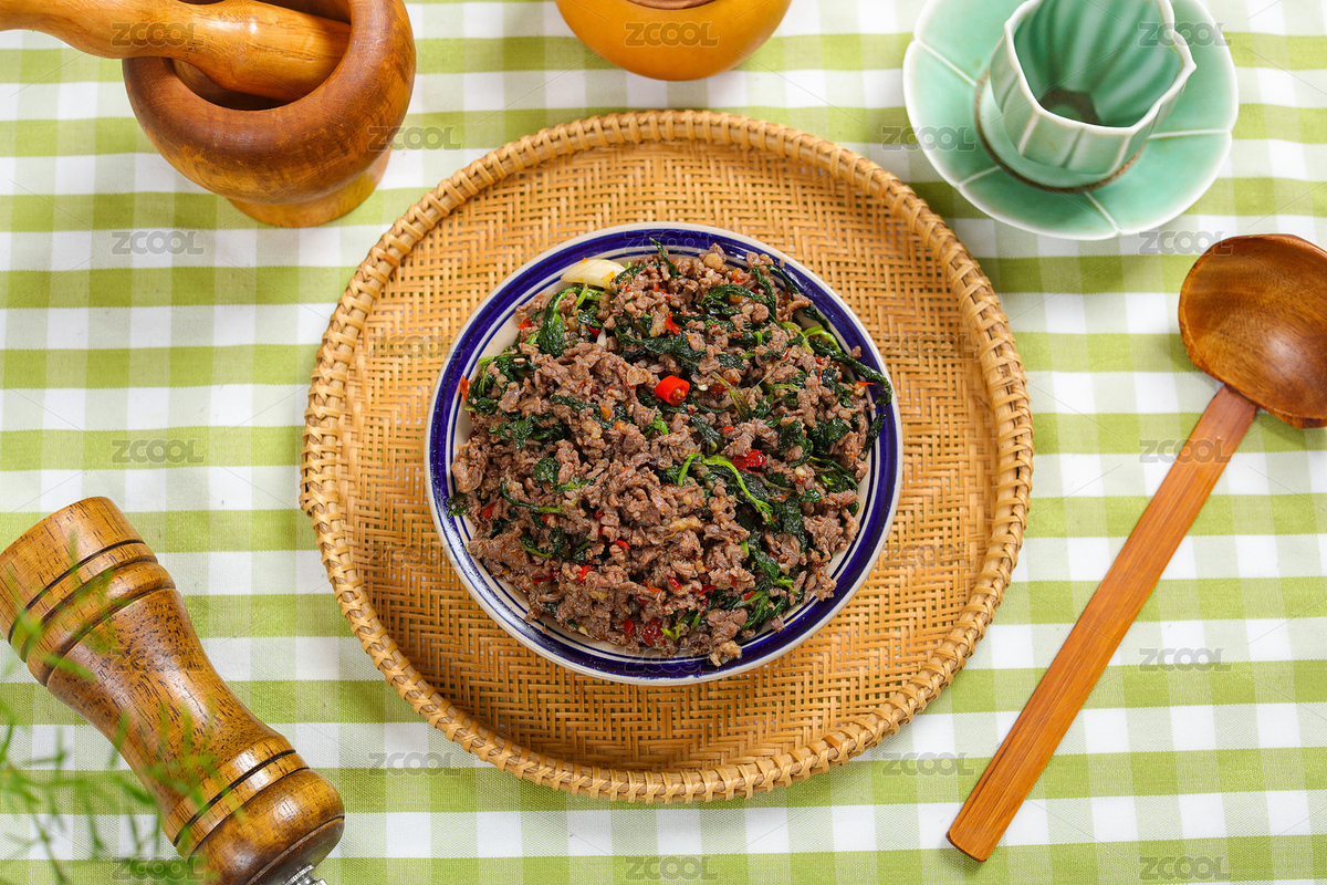 香辣美食下饭菜薄荷叶炒牛肉沫