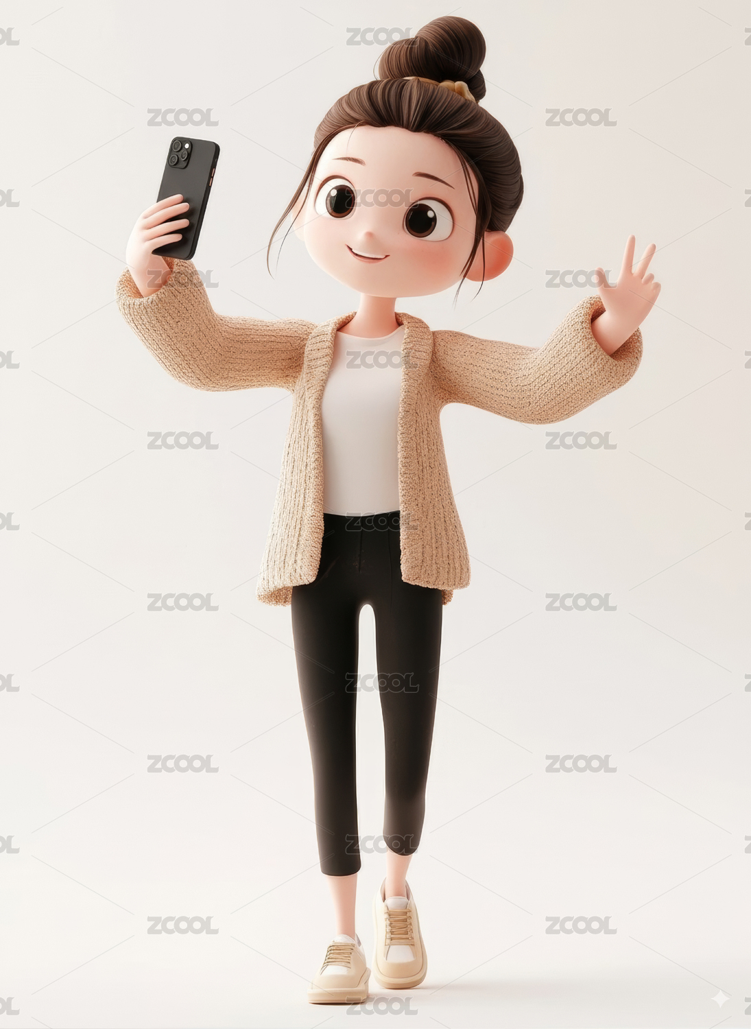 3D卡通女孩在自拍