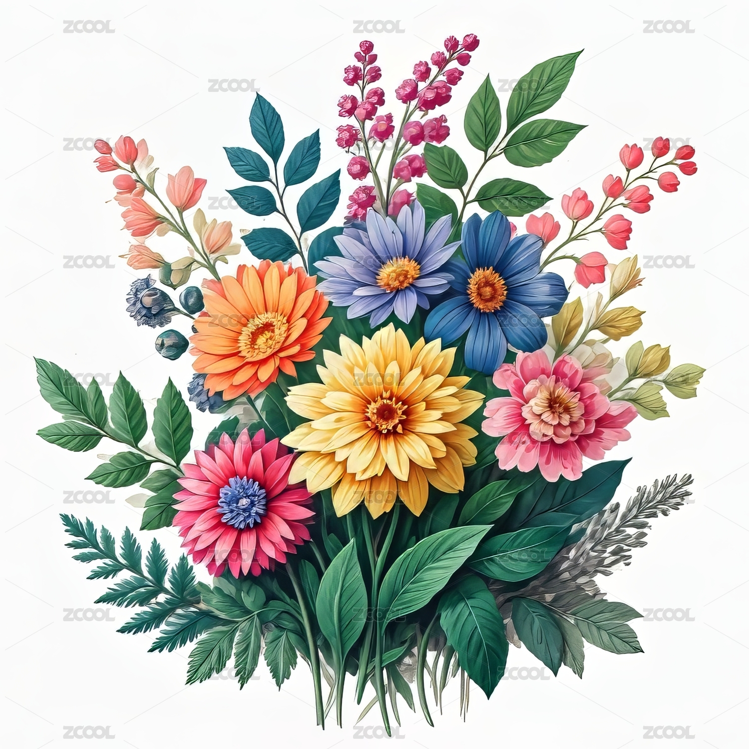 水彩风花束花枝插画