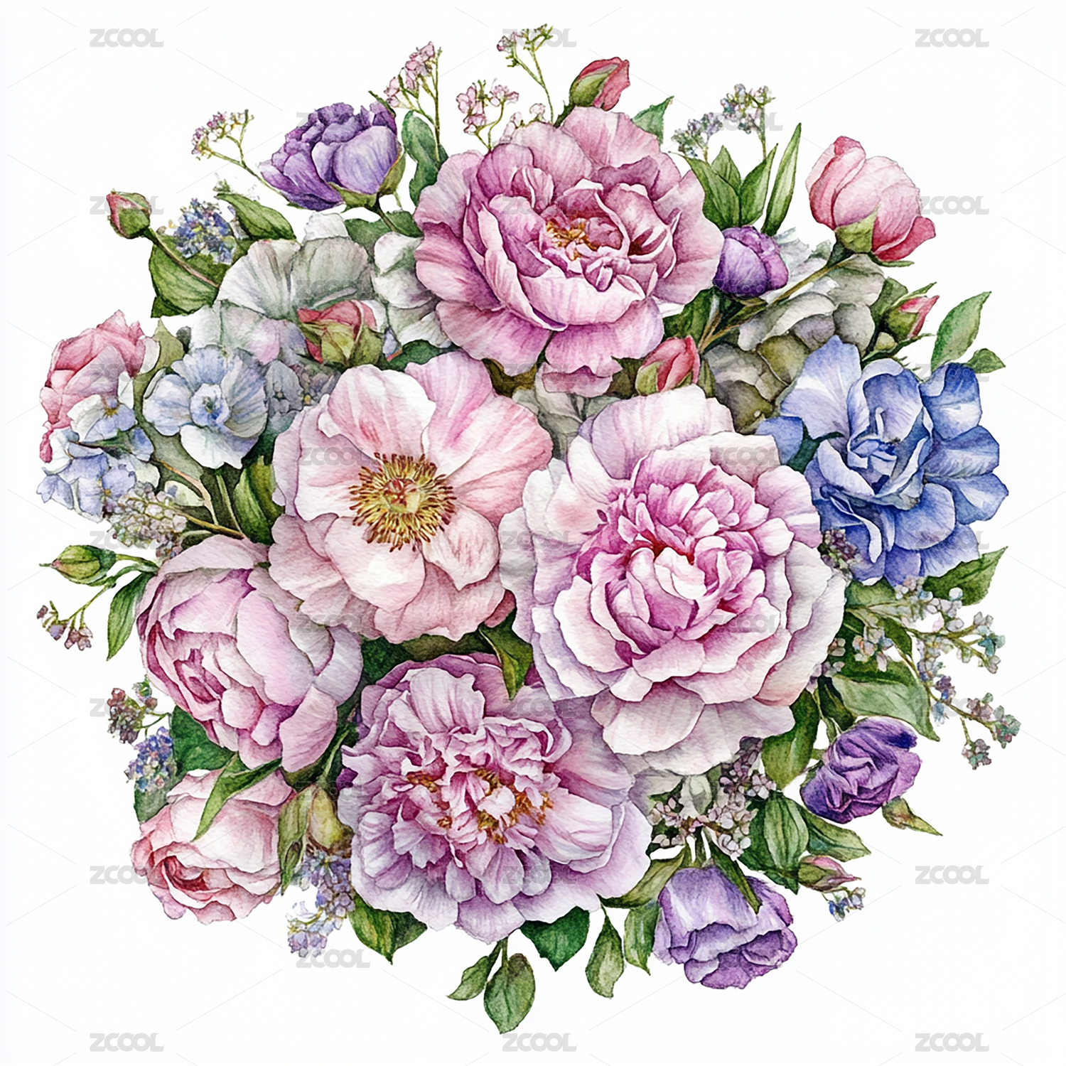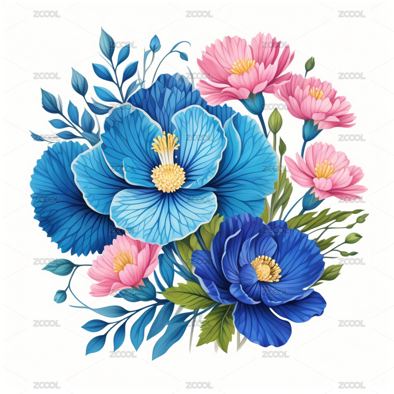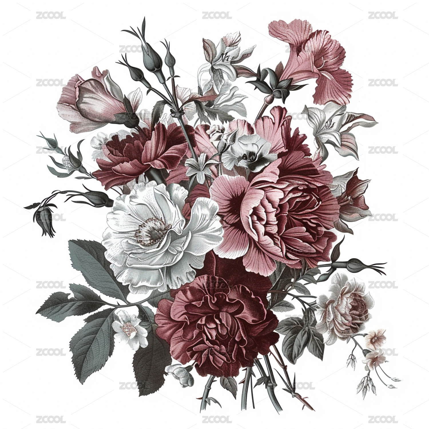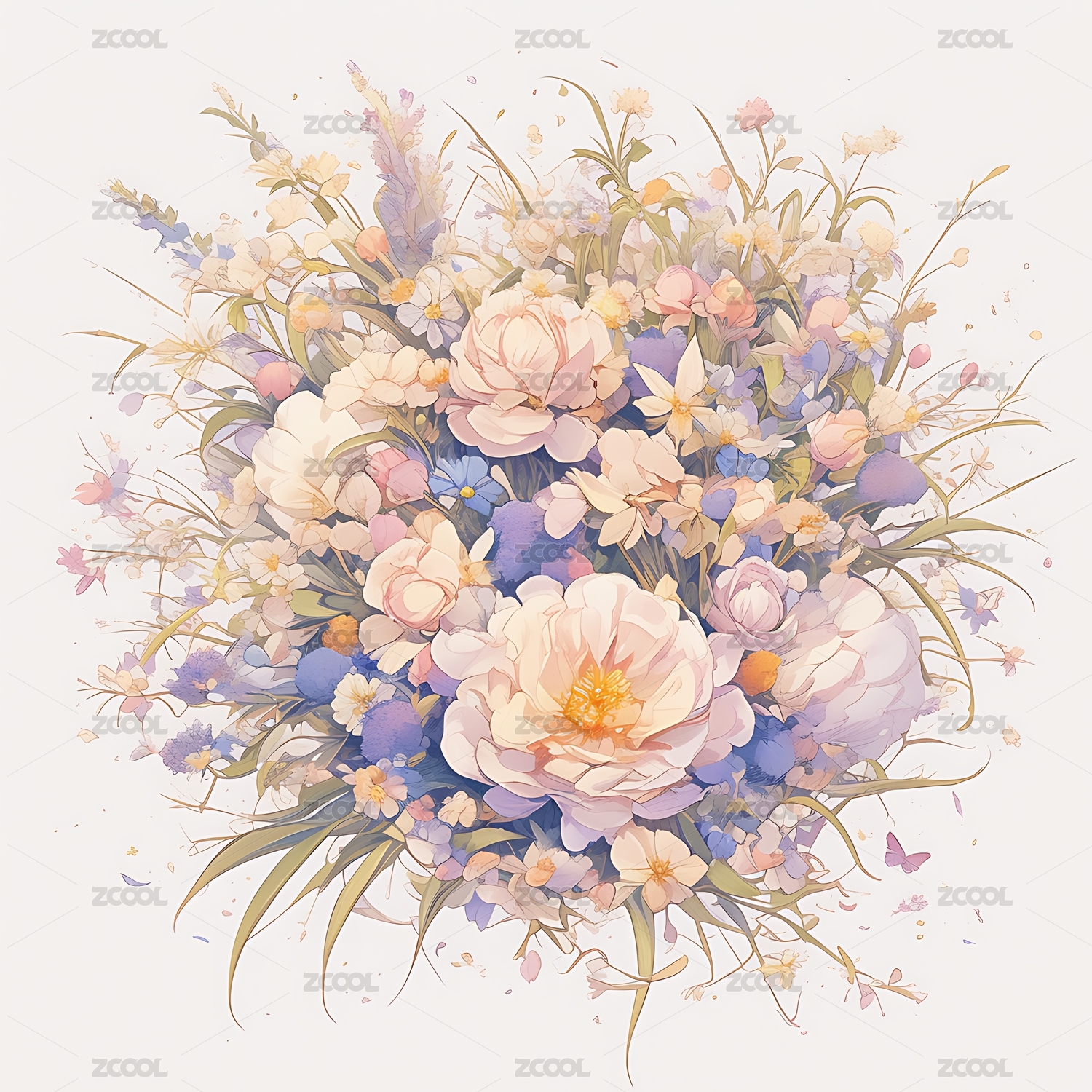 唯美装饰图案自然花卉绿植花束鲜花插画