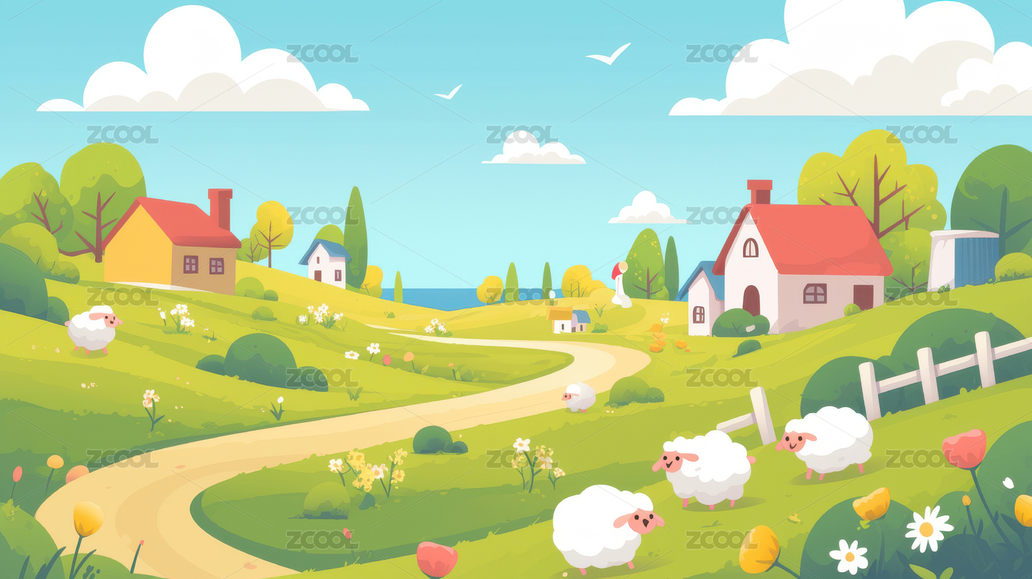 卡通,农舍,养鸡场,插画,农场,散养鸡,土鸡,家禽,放养鸡,农家鸡