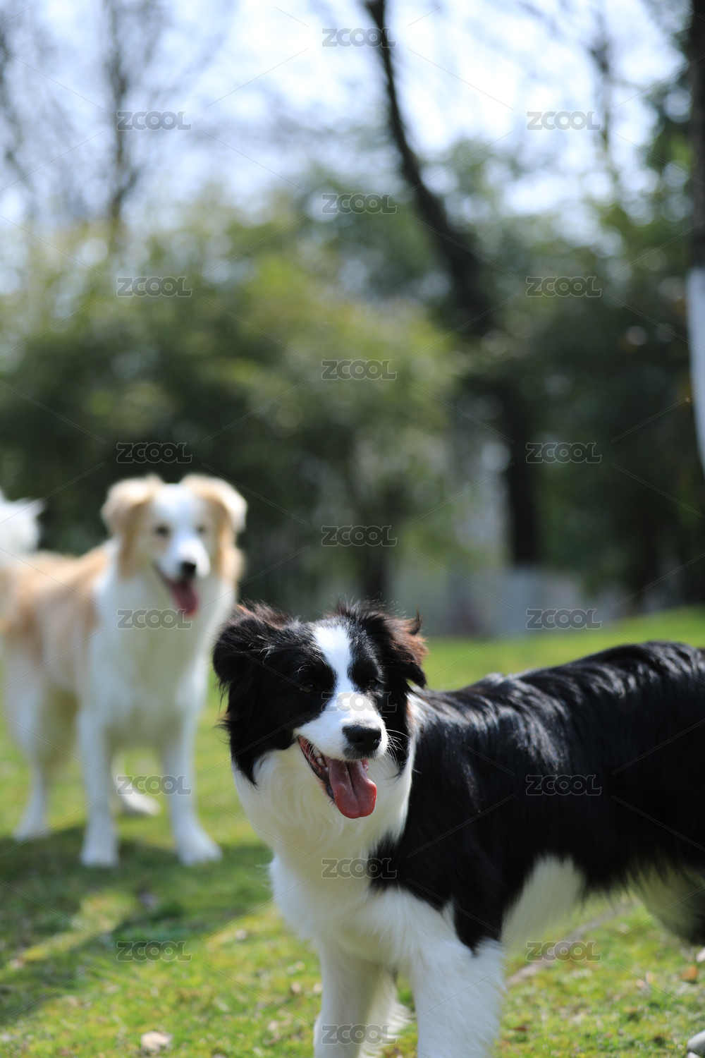 公园里玩耍的两只边境牧羊犬