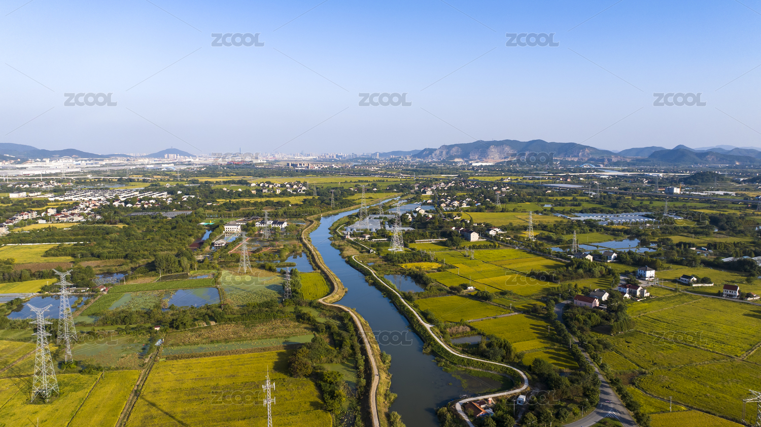 航拍视角,浙江省,湖州市,湖州,旅行,房屋,航拍,稻田,丰收,万亩良田