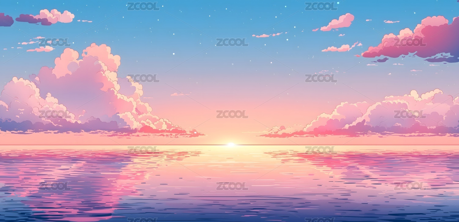 唯美大海风景渐变插画