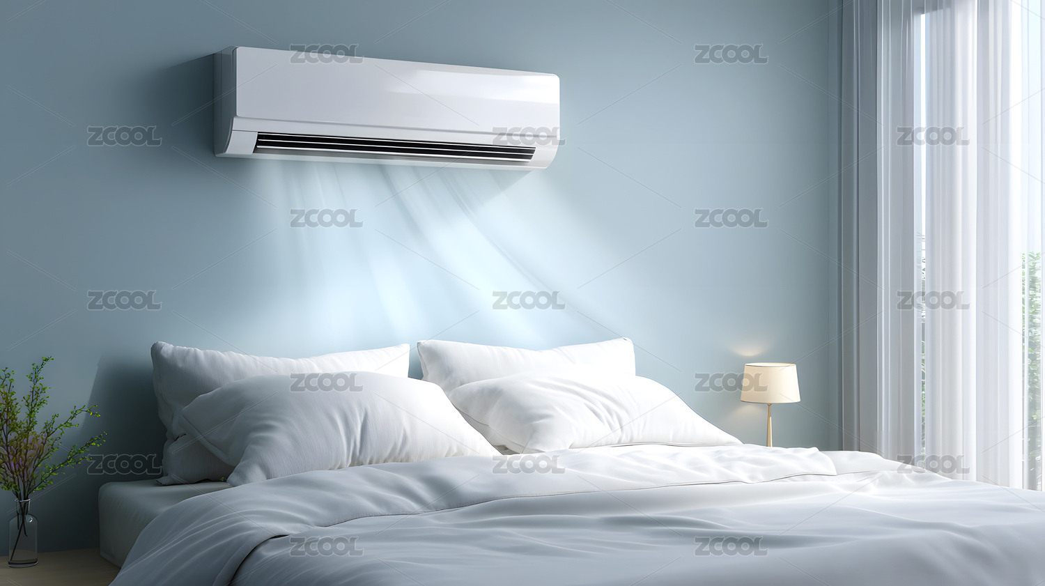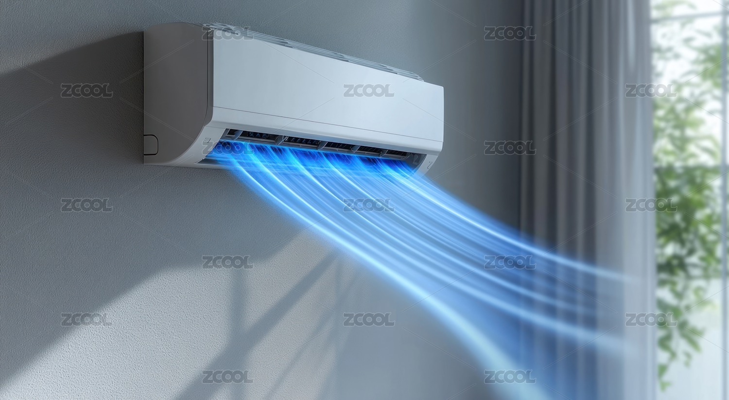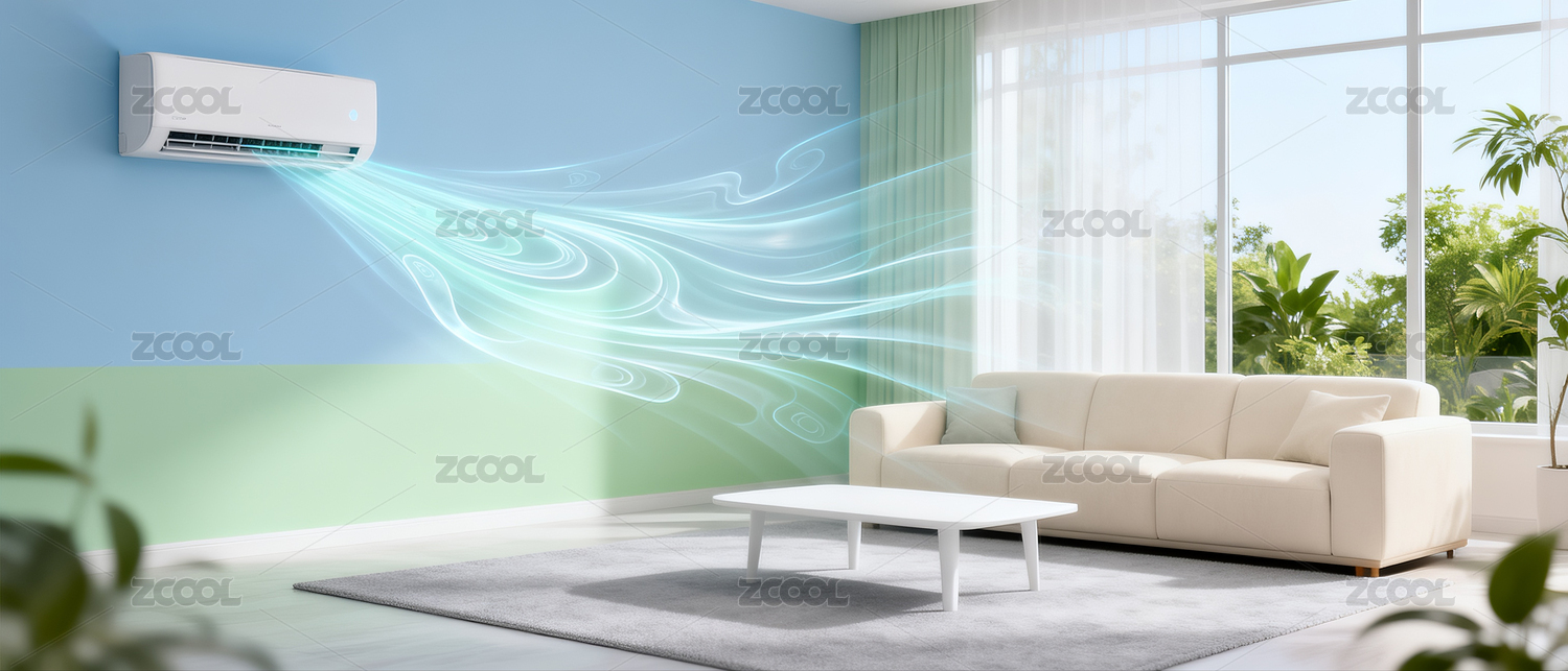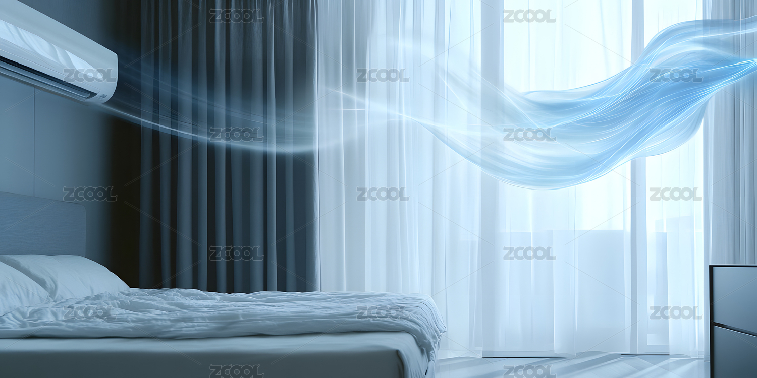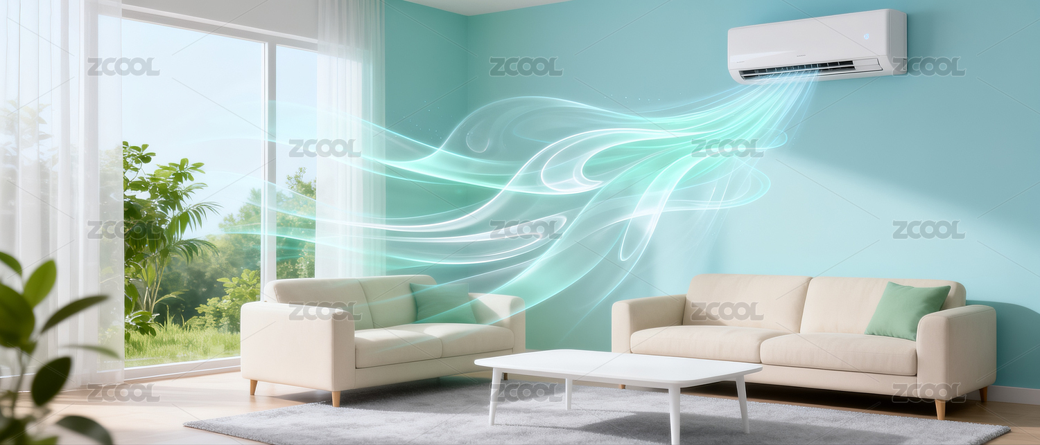 节能空调新风系统居家制冷吹风特效概念