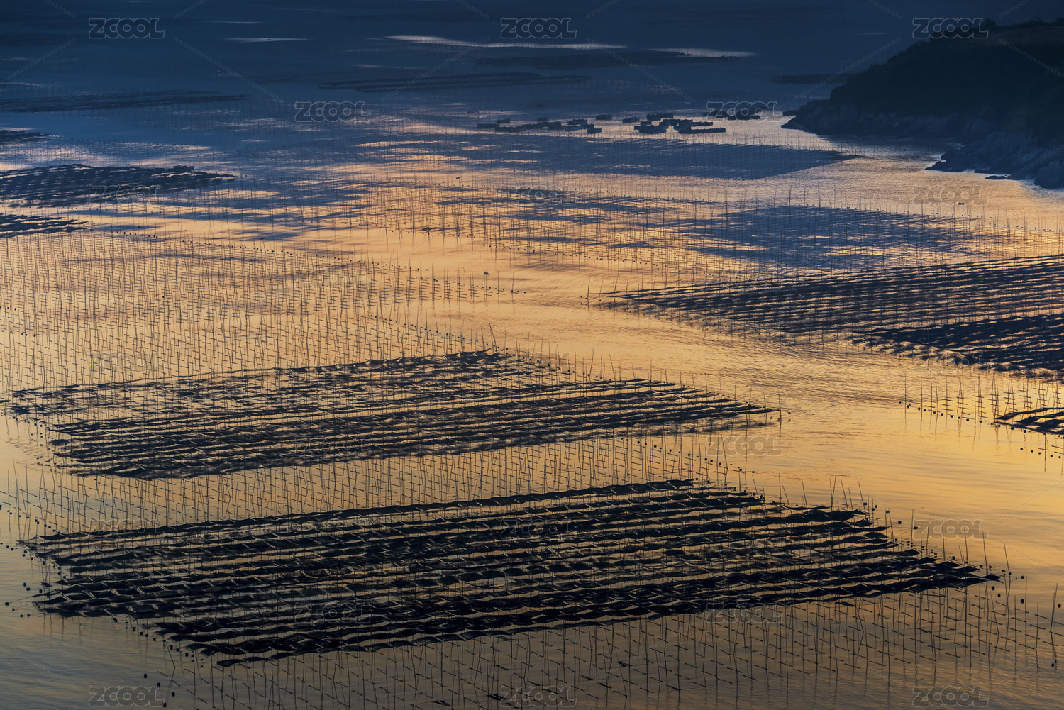 大连小长山岛海上养殖场傍晚风光