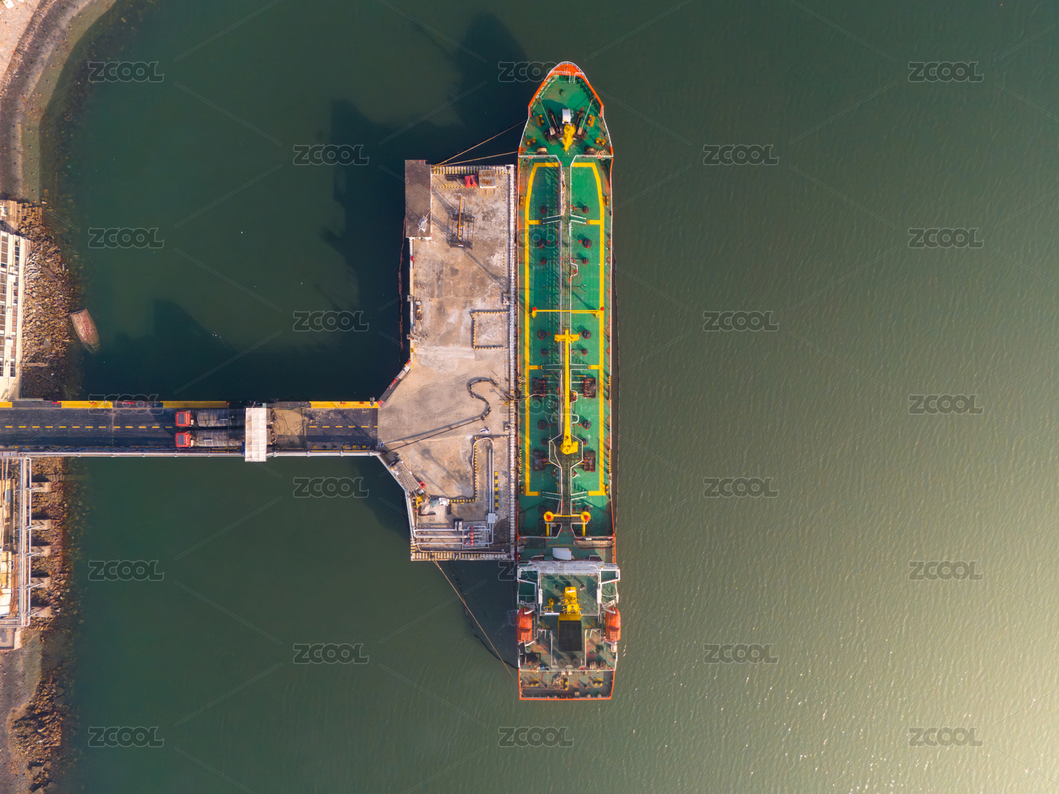 厦金大桥俯瞰蓝色拖船停靠在码头