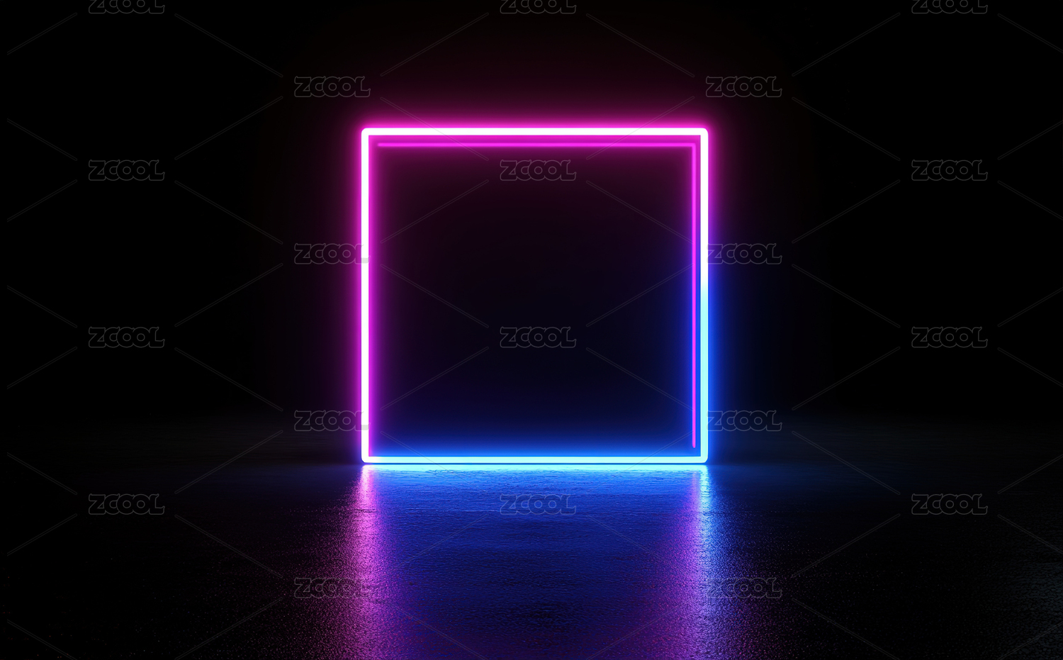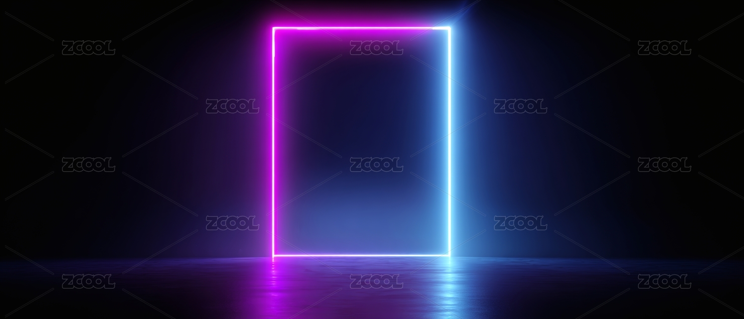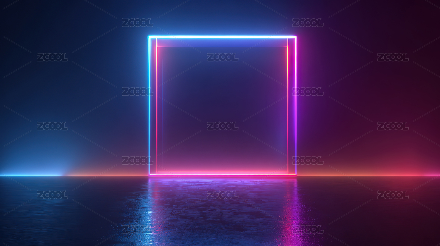 不同几何形状的五彩斑斓的舞台霓虹灯背景素材