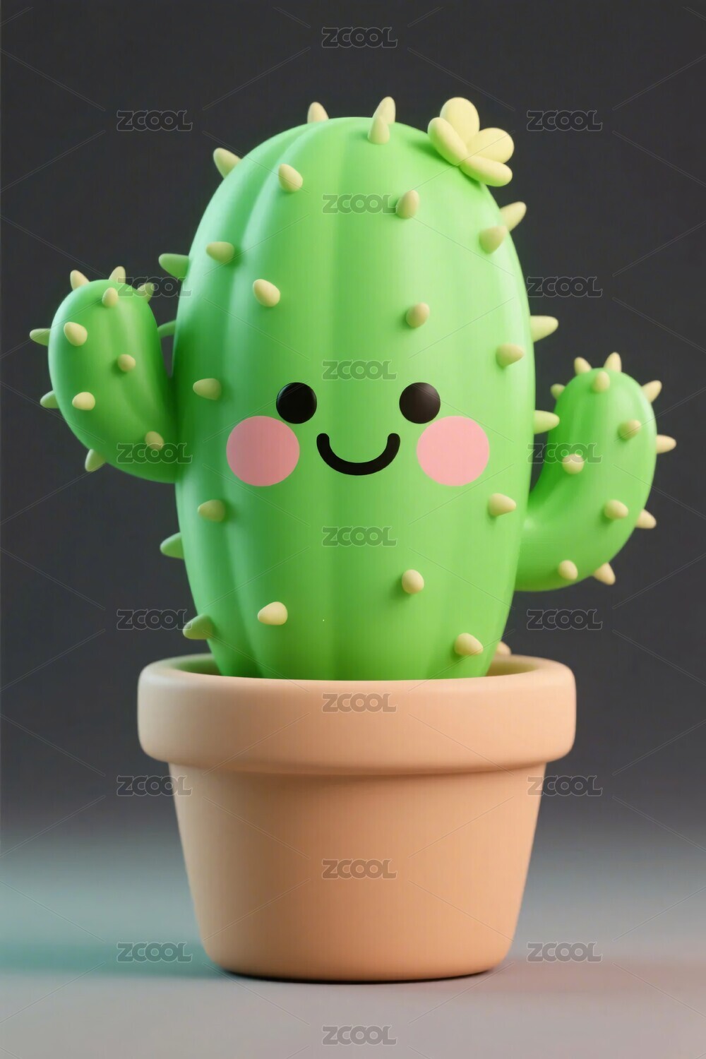 卡通,可爱,仙人掌,热带,植物,仙人球,开花,花苞,绽放,花卉