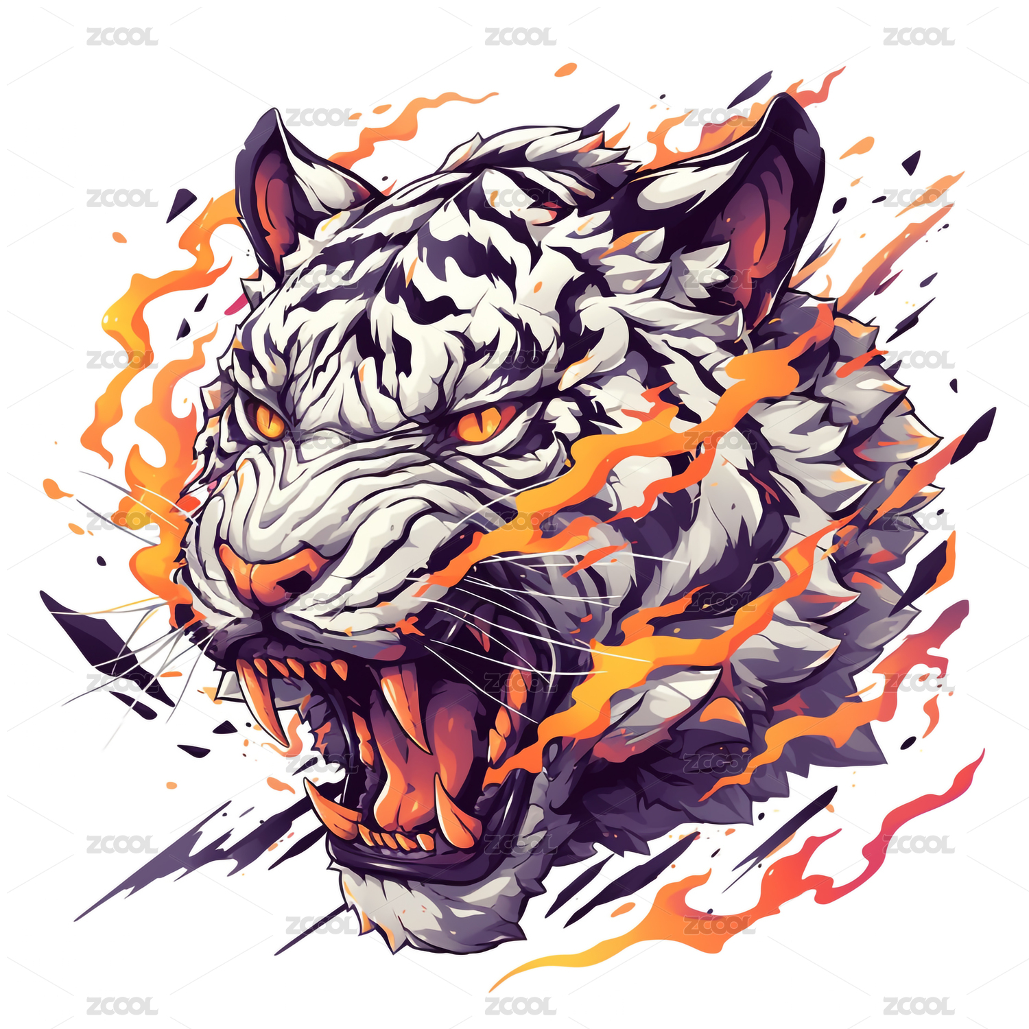 美式复古咆哮的老虎与火焰装饰图案