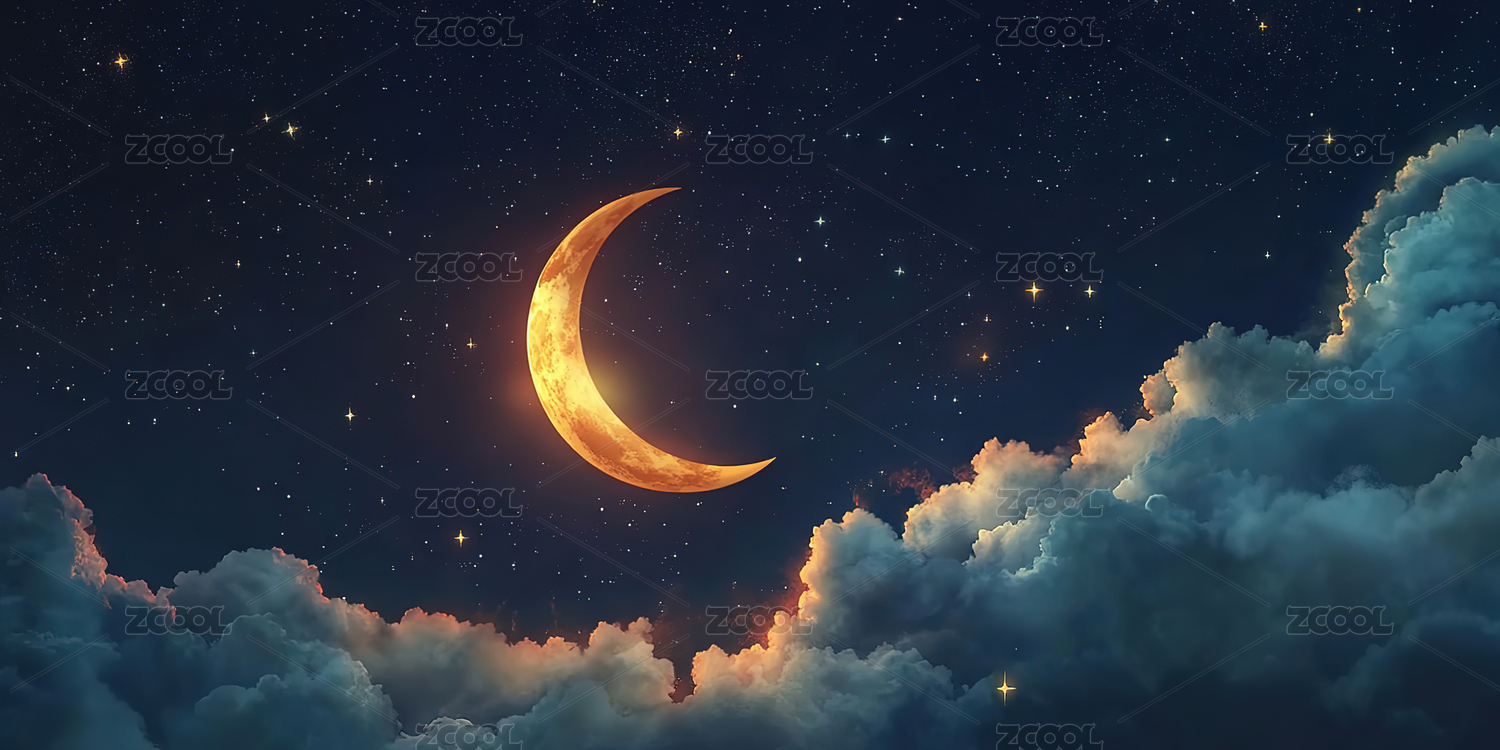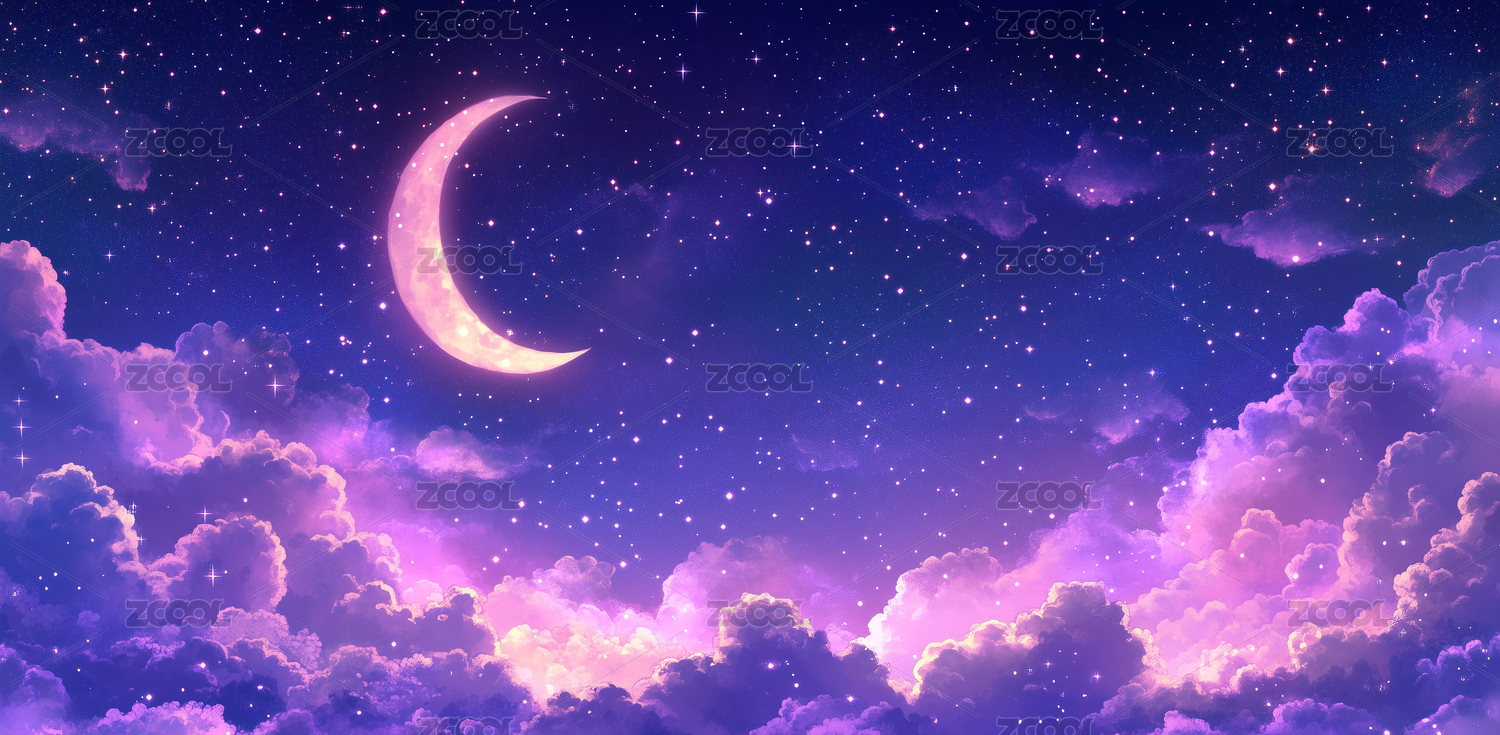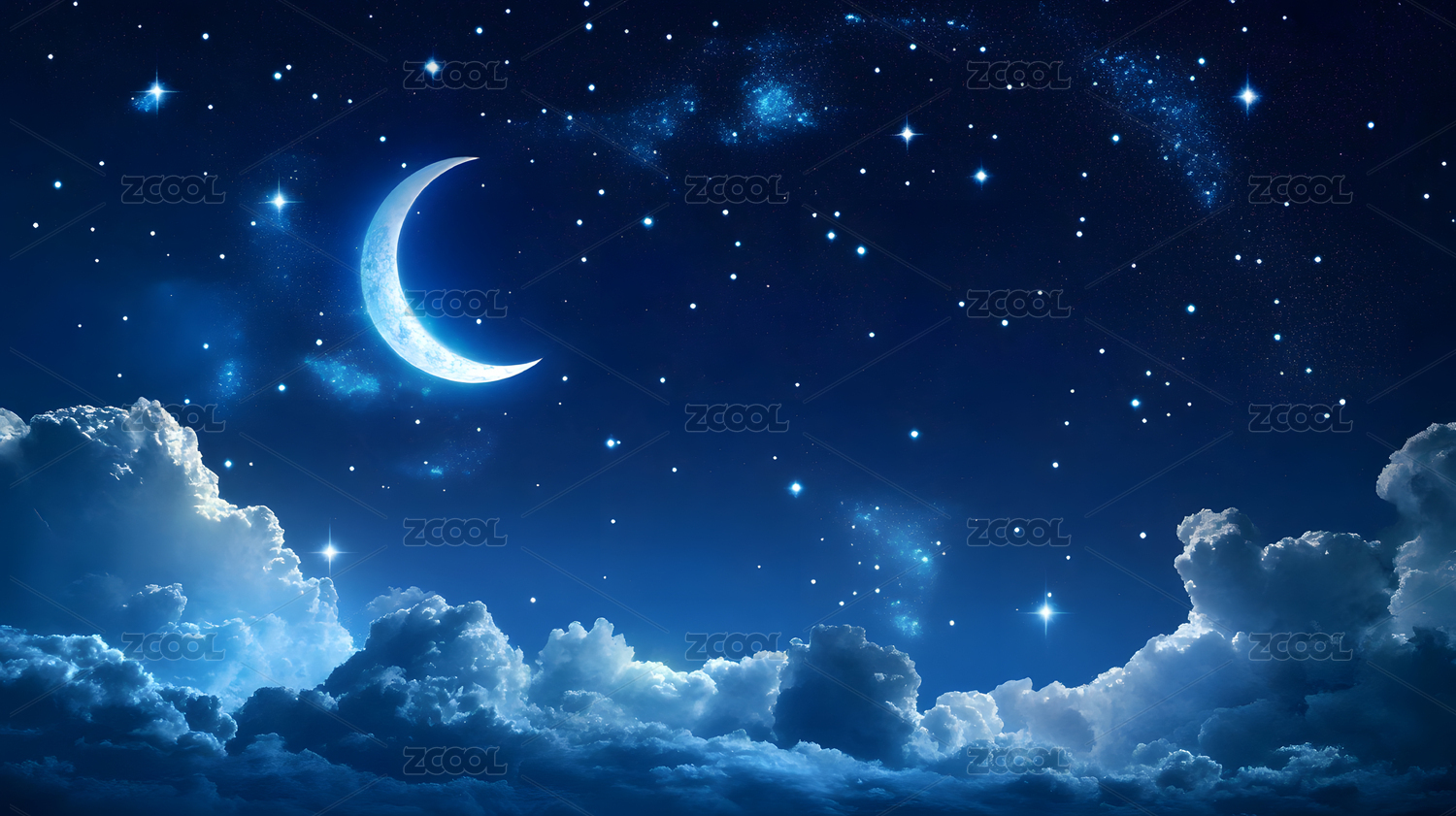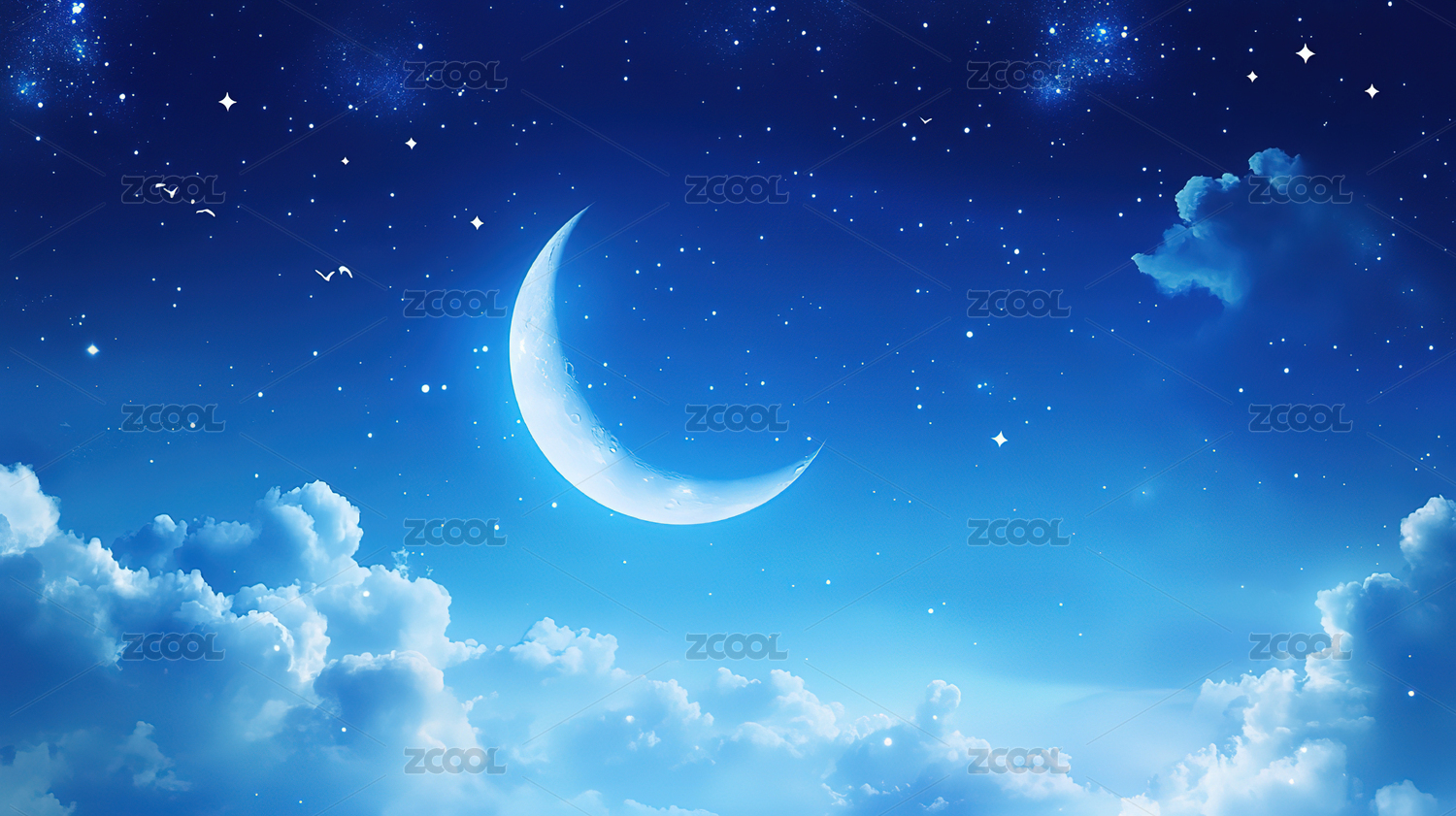 插画,背景,月亮,云,星星,童话,蓝色,星空,空间,太空