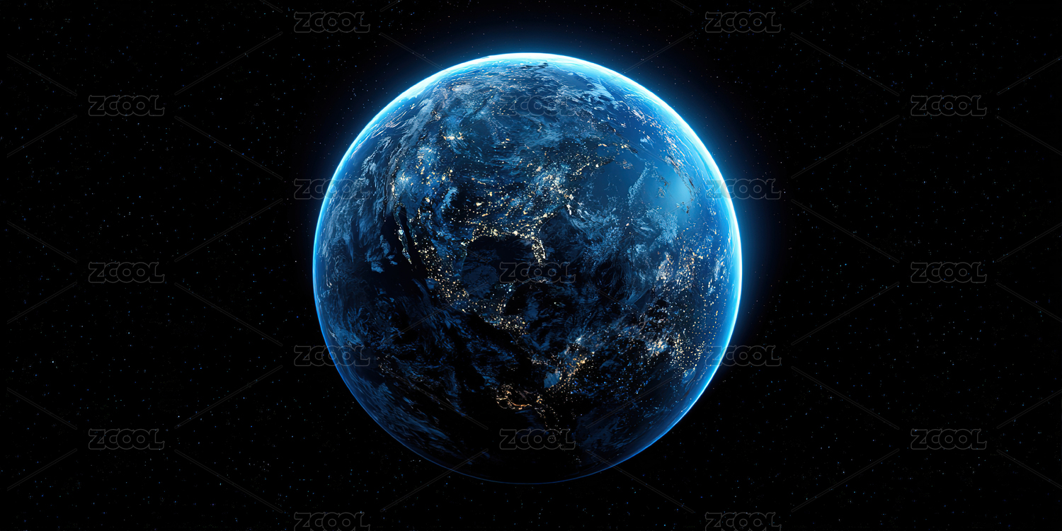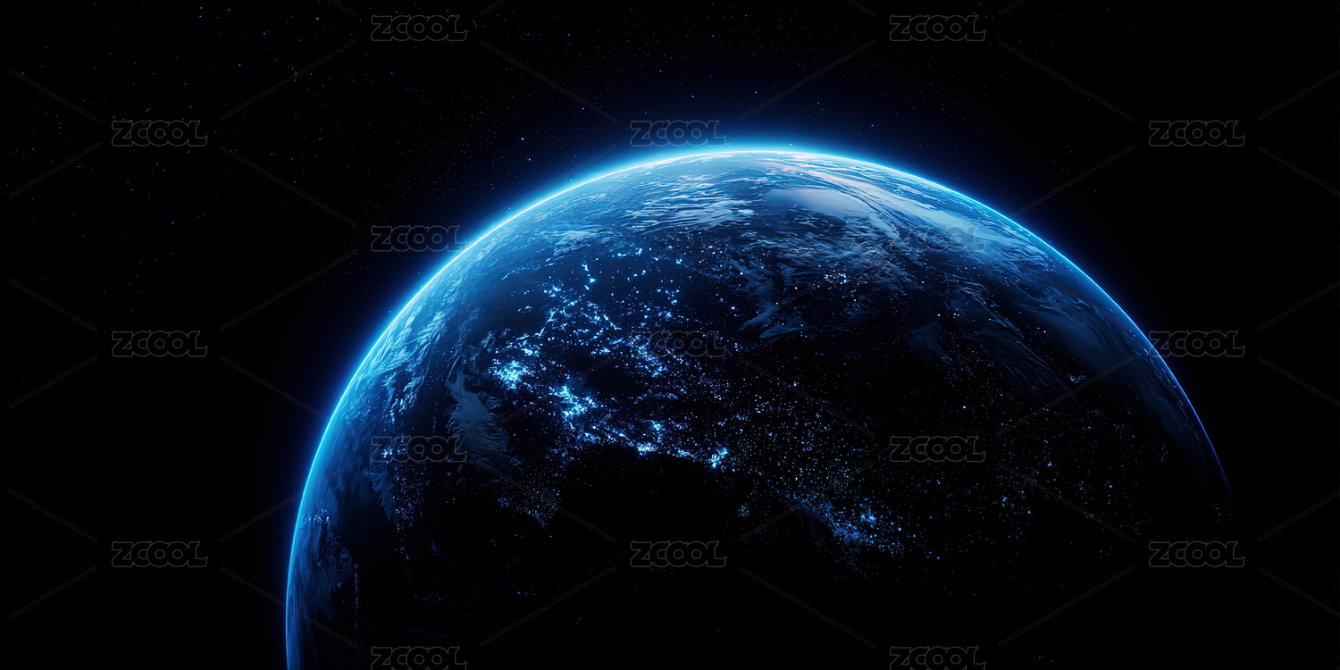深邃宇宙中一颗蔚蓝色行星的壮丽景象
