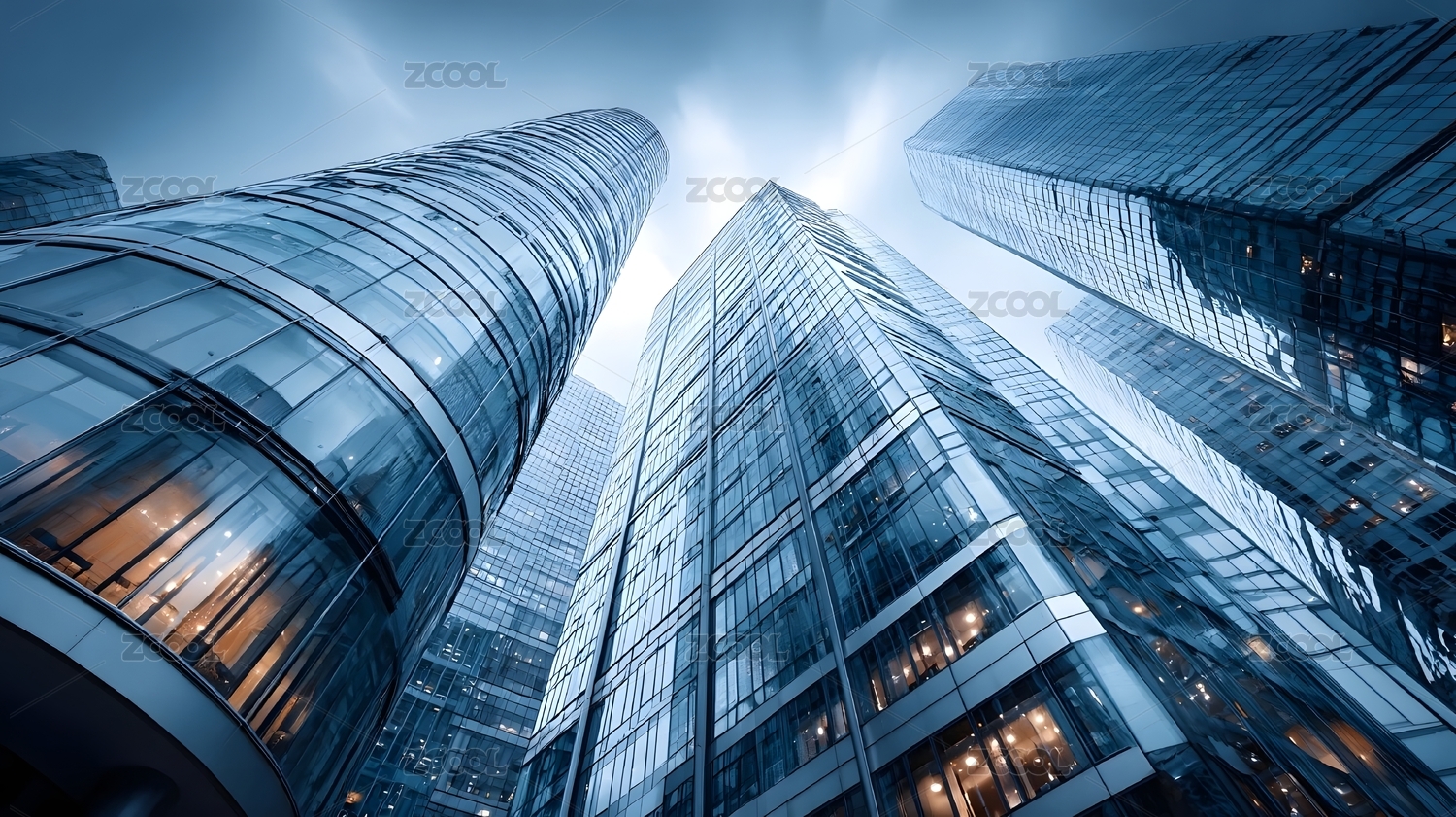 仰视的城市CBD建筑玻璃幕墙和蓝天白云