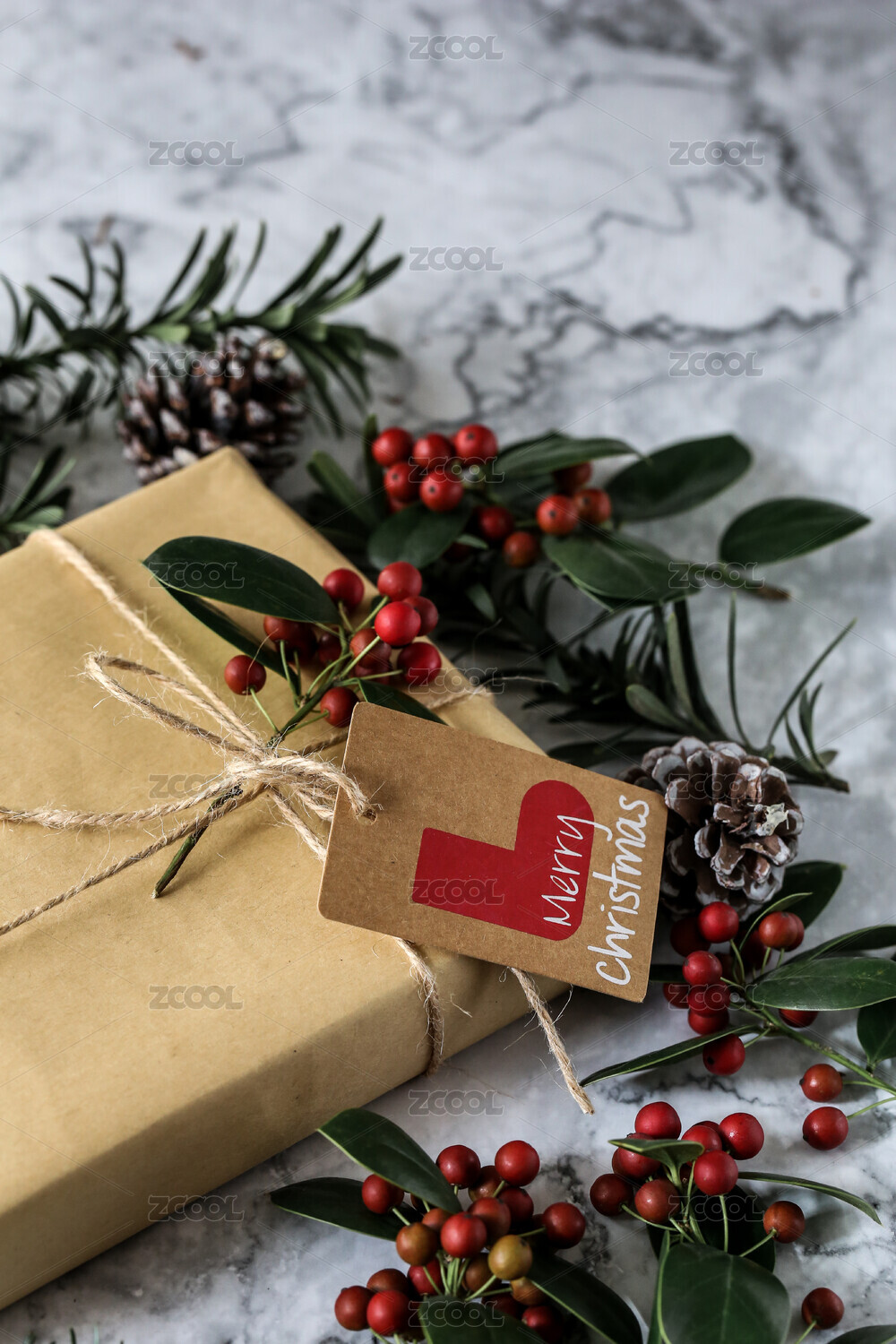 放在白色大理石上的圣诞节礼物盒