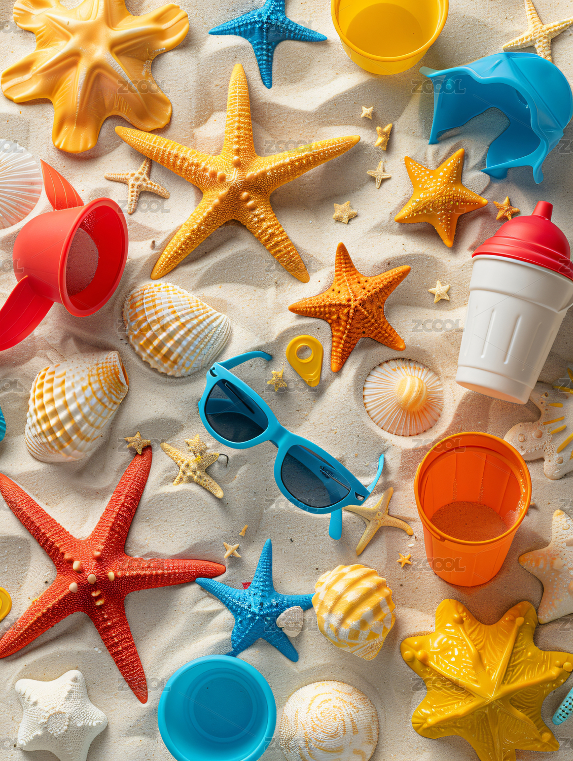 玩具,夏天,儿童,海滩,清新,游乐园,简单,海星,沙子,眼镜
