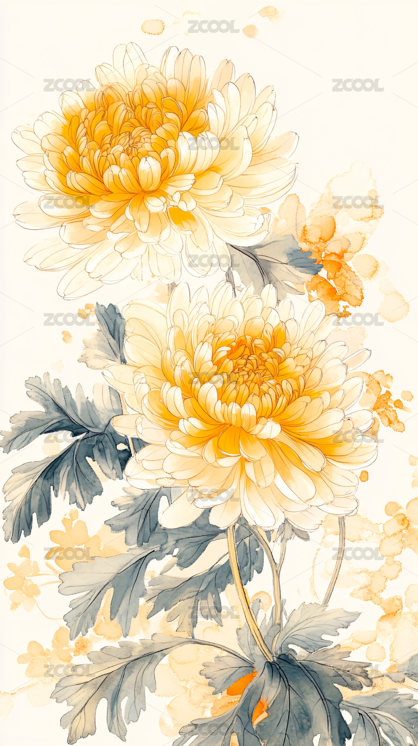 无人,植物,花簇,叶子,植物学,花,AI数字艺术,自然,花头,装饰