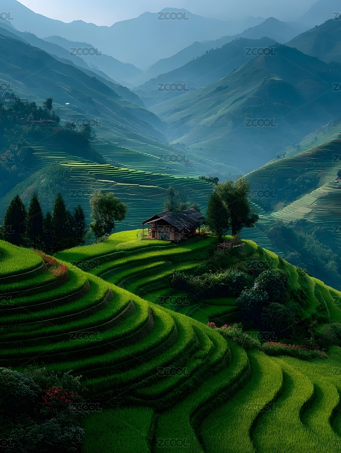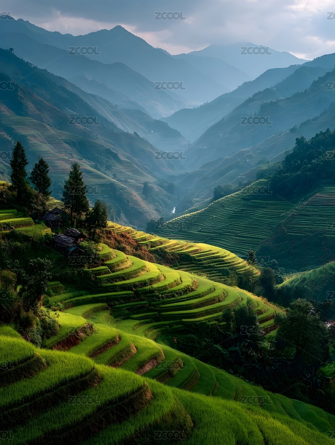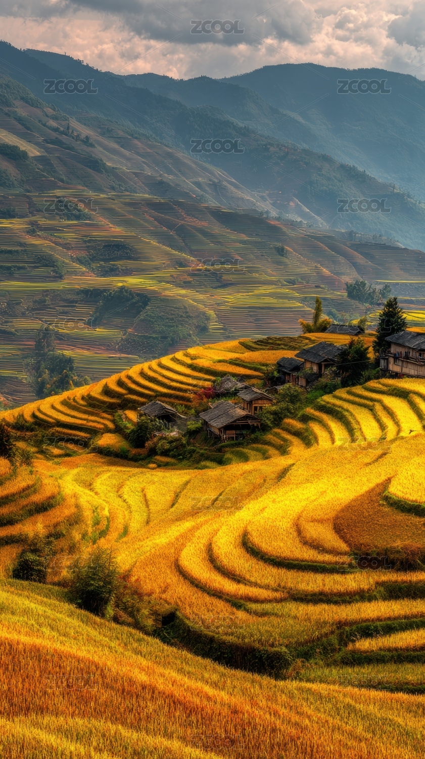 山,水,云,天空,梯田,村落,自然,风景,清新,唯美