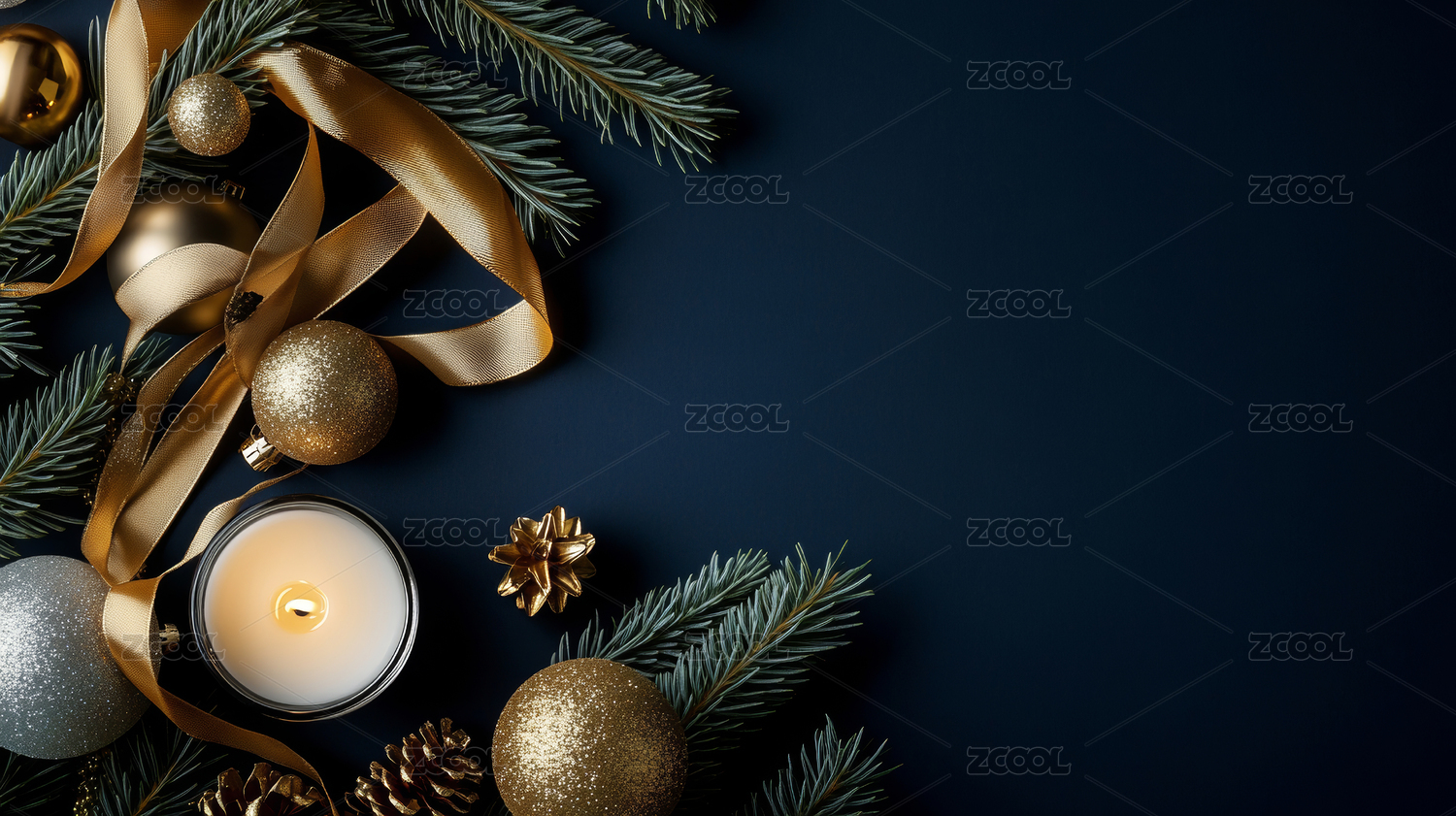 棕色背景桌子上的蜡烛和圣诞装饰品高清图片