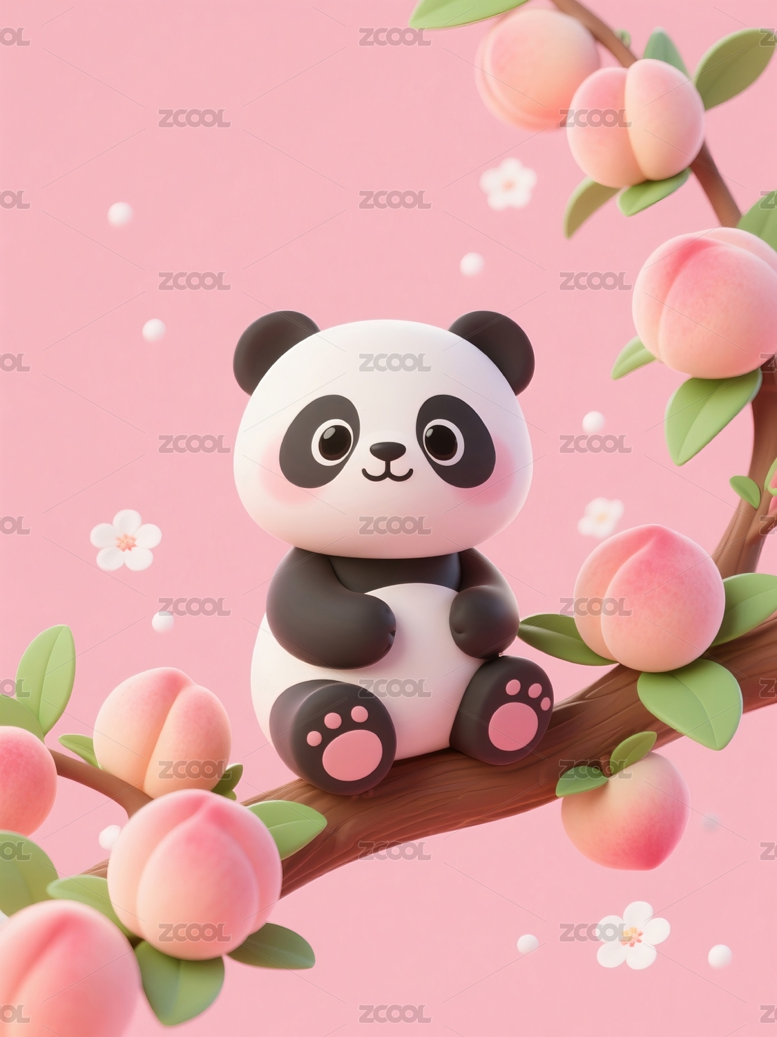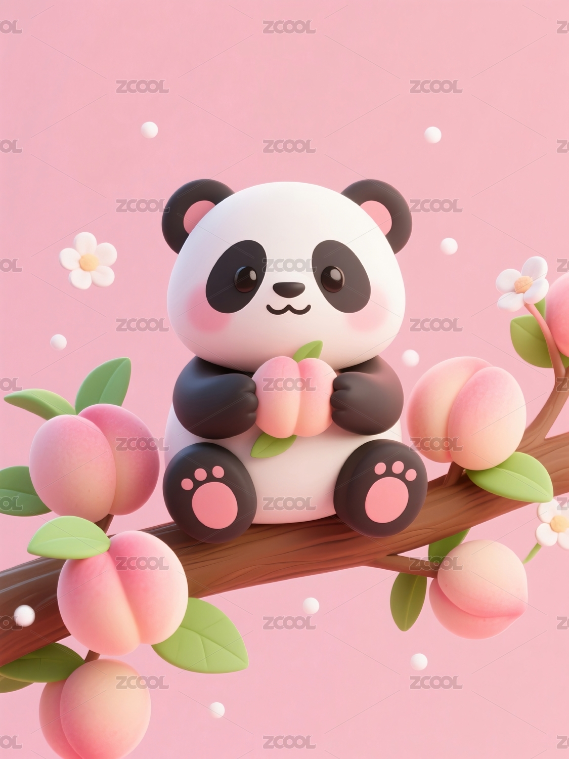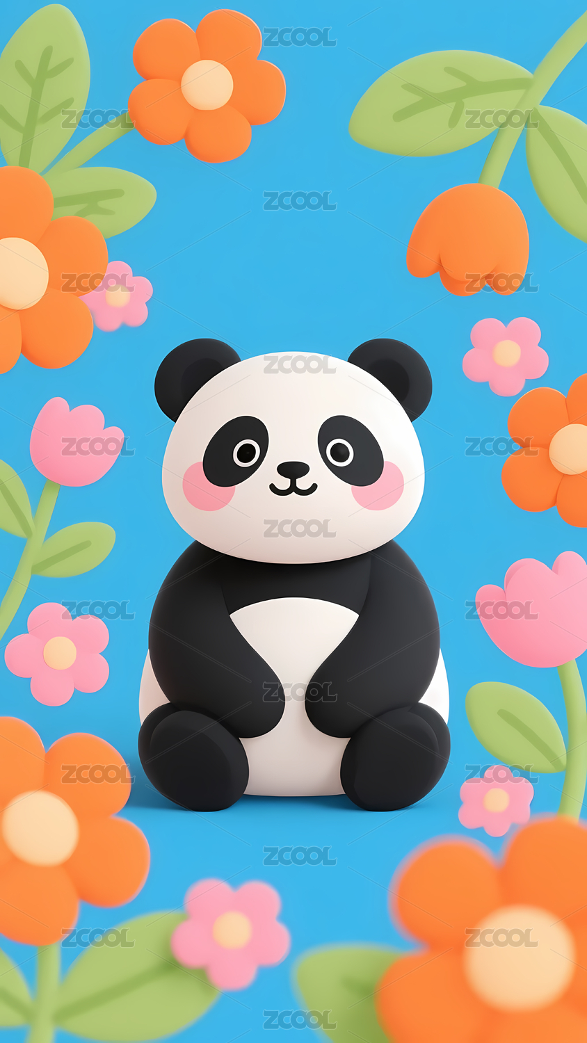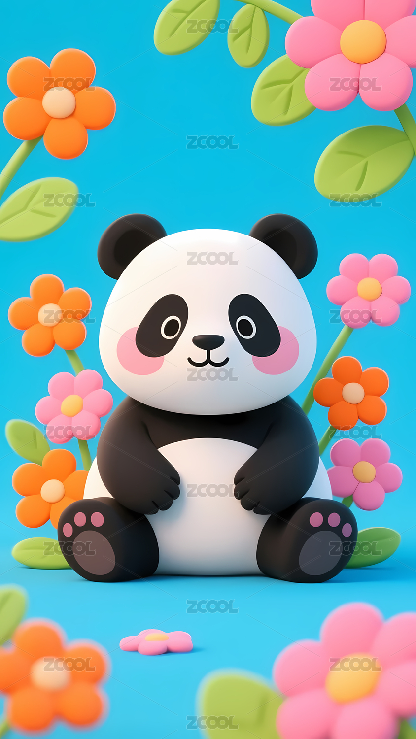 花朵,粉色,现代,三维,立体,3D,卡通,熊猫,墨镜,可爱