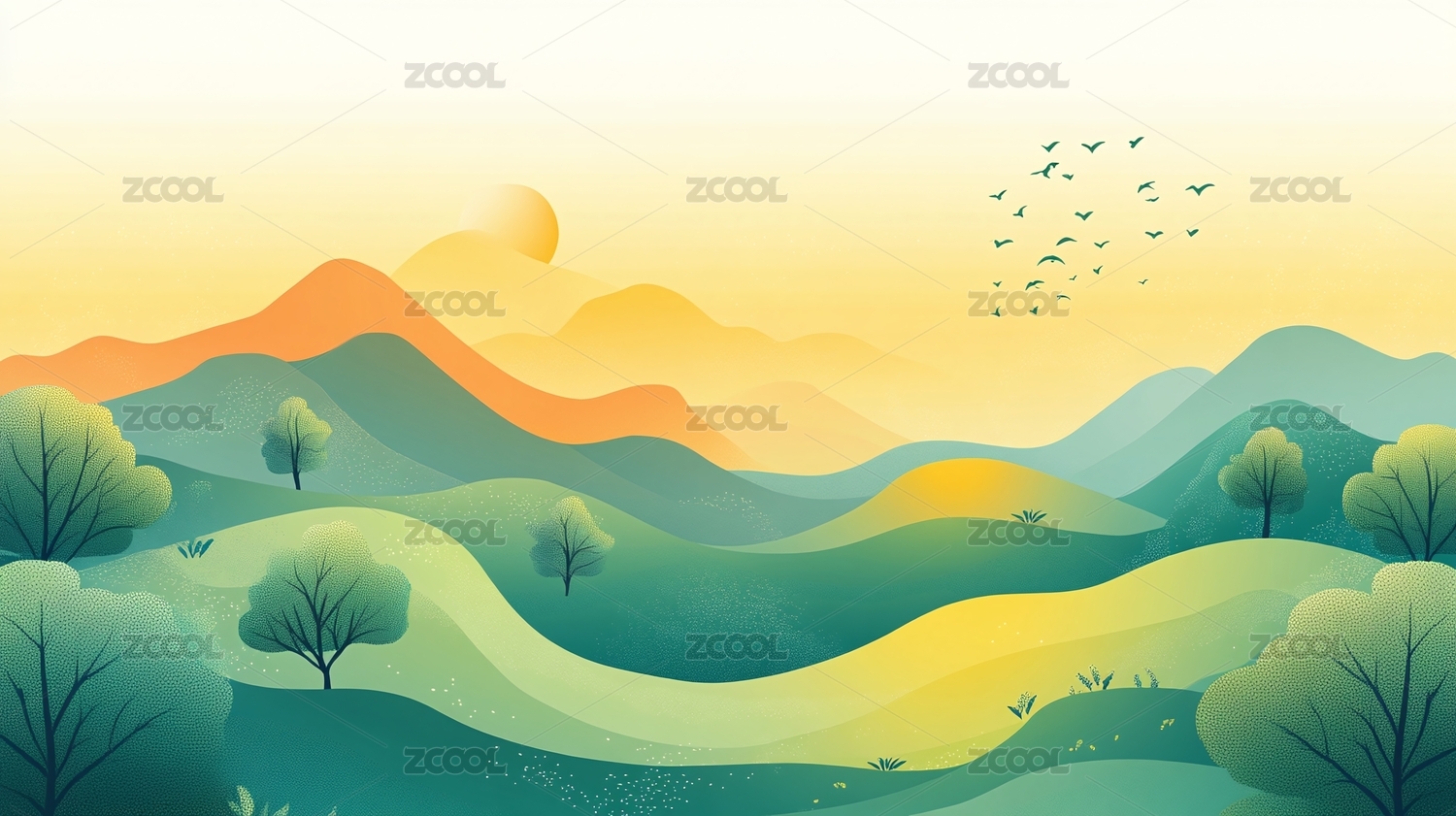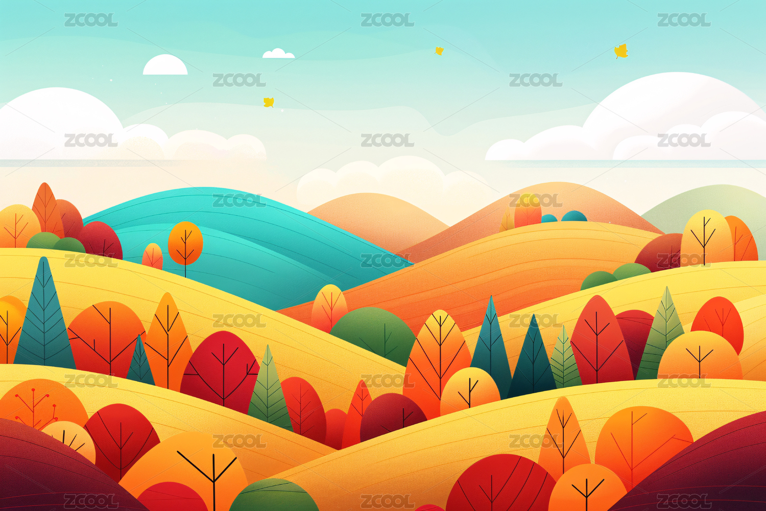 立秋节气户外旅行自然风景处暑卡通唯美插画