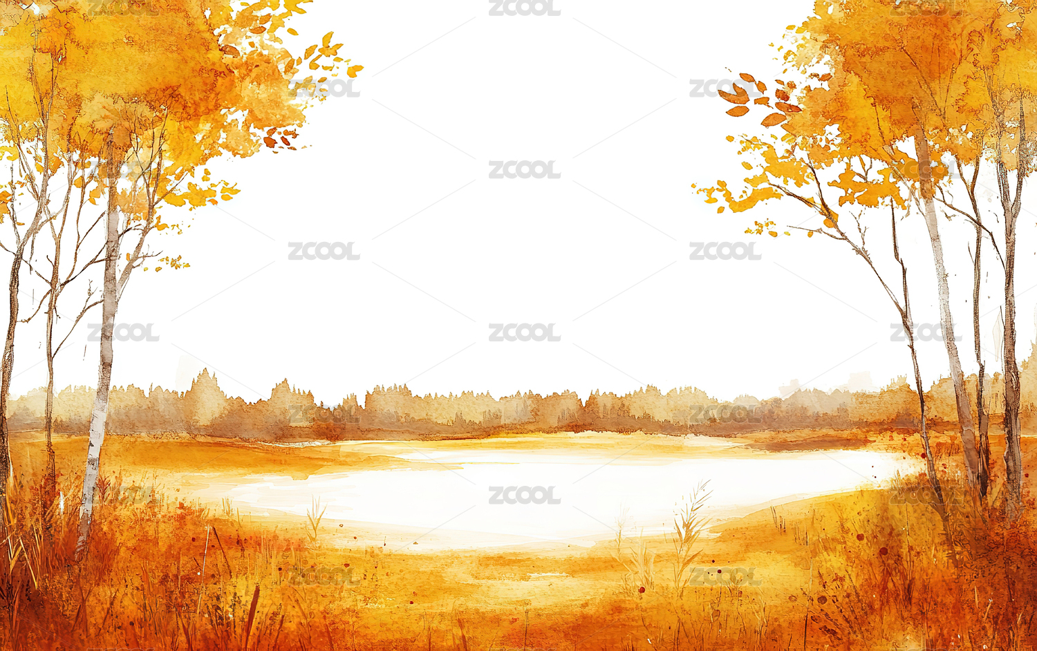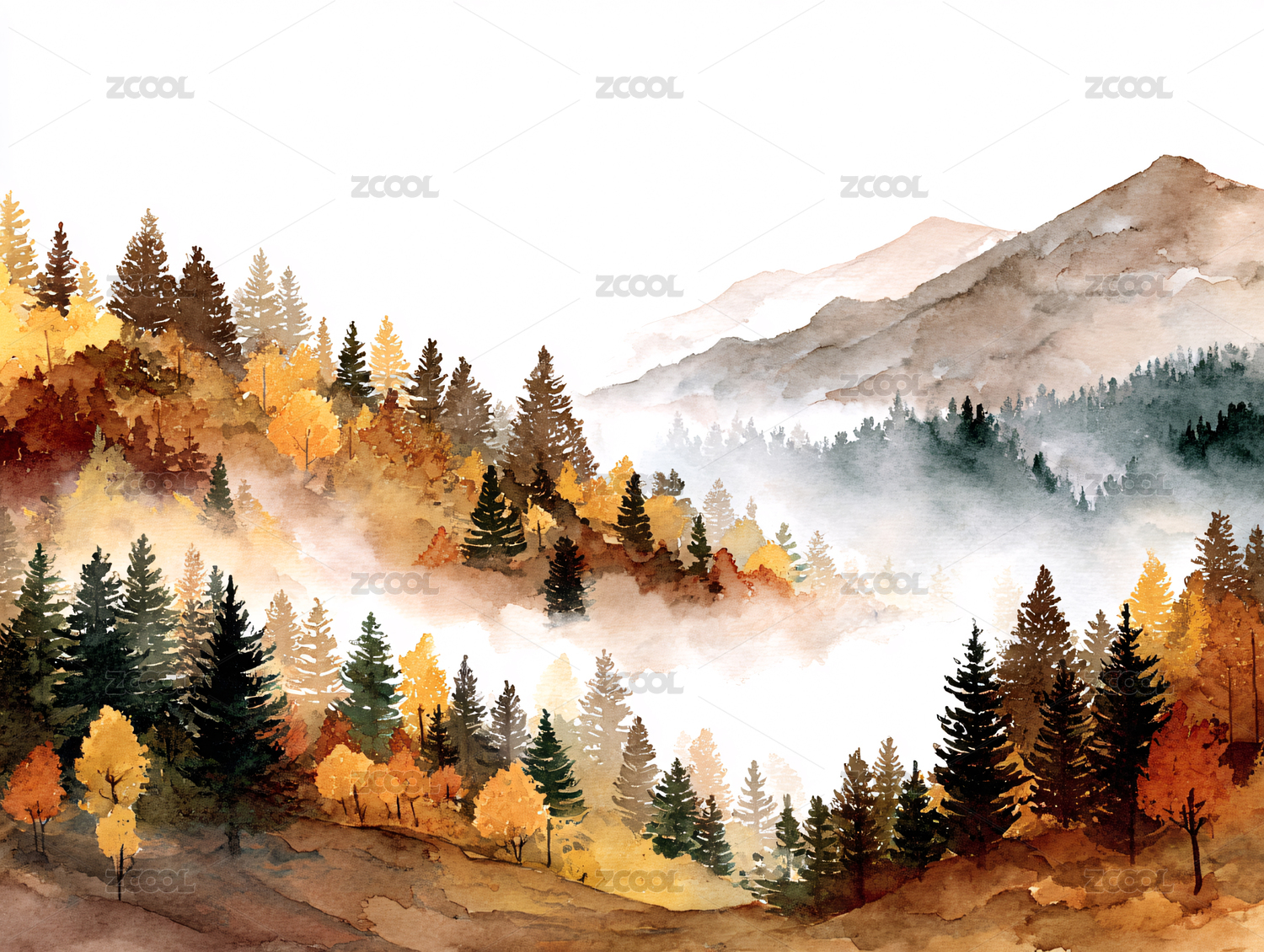 秋日山林水彩意境