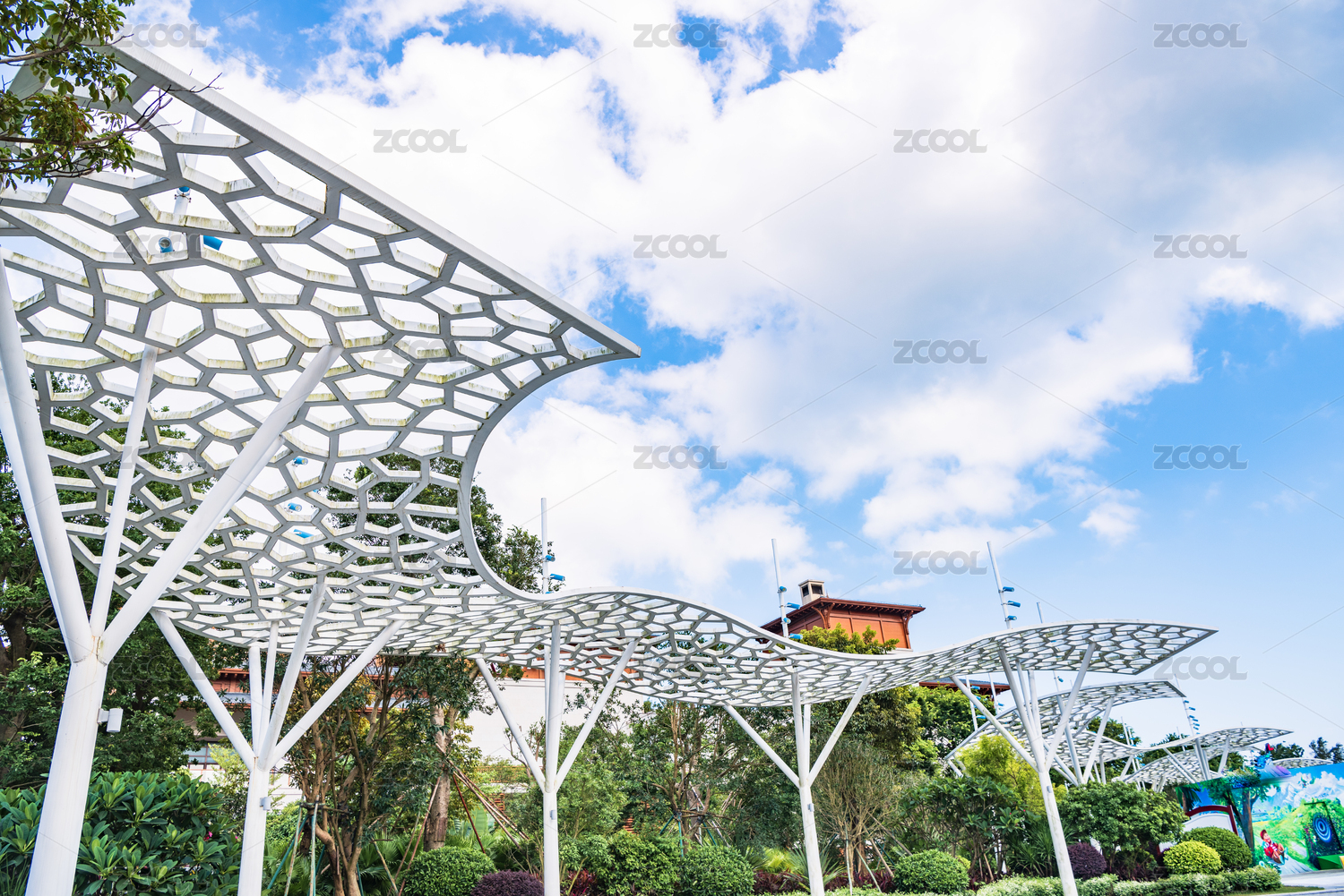 中国广州市南沙区蕉门河人行天桥建筑风光
