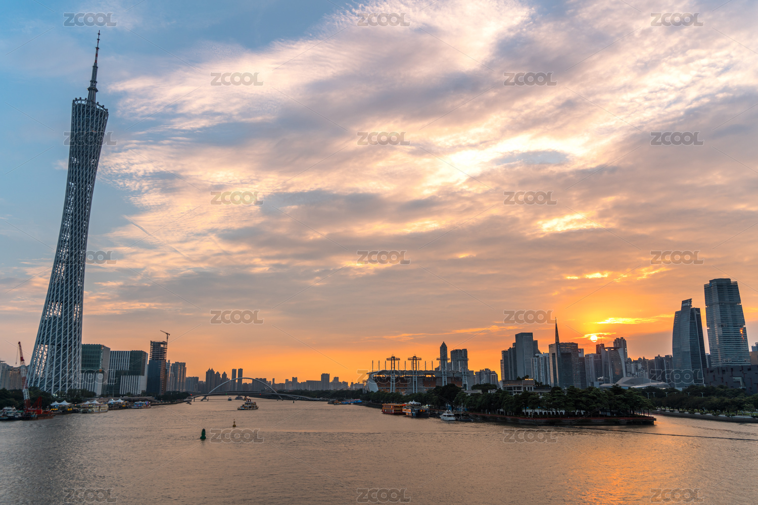 广州,珠江,夜景,珠江新城,广州塔,夕阳,晚霞,旅游景点,旅游,大都市区