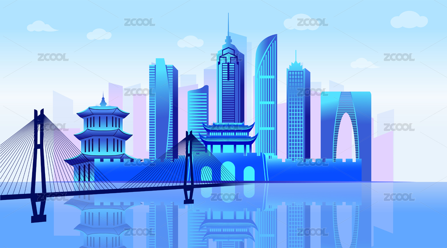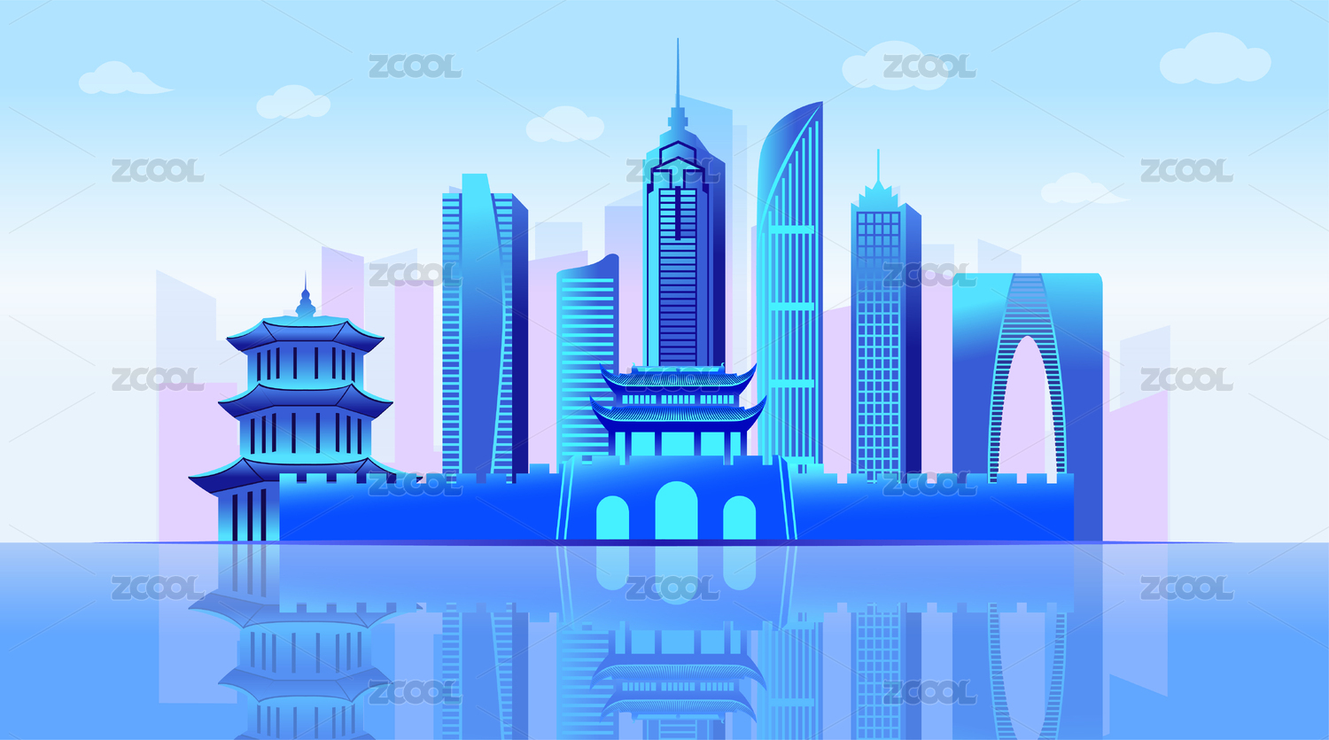 扬州城市天际线金融插画