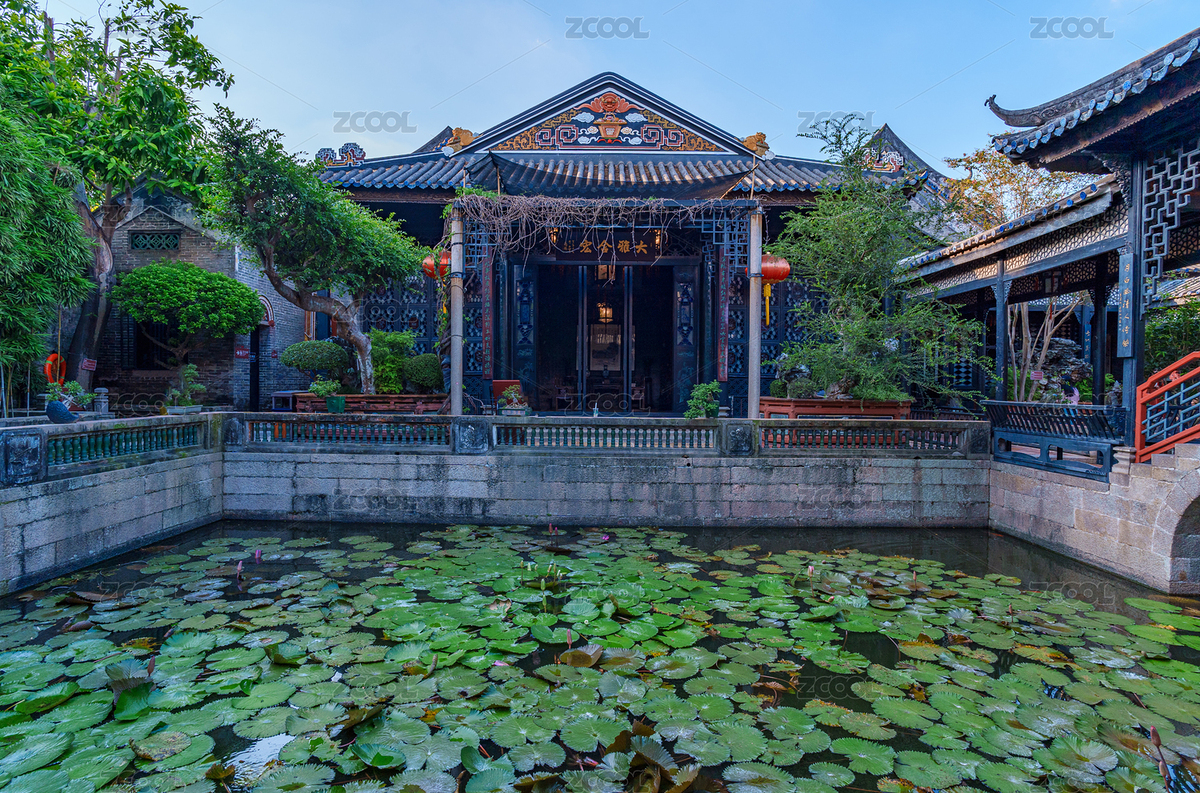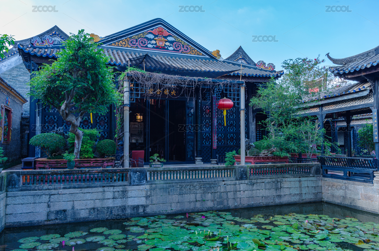 中国广州番禺余荫山房亭台楼阁庭院水池景观