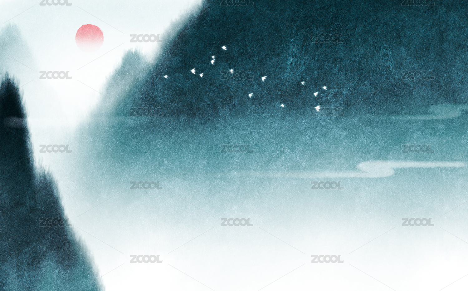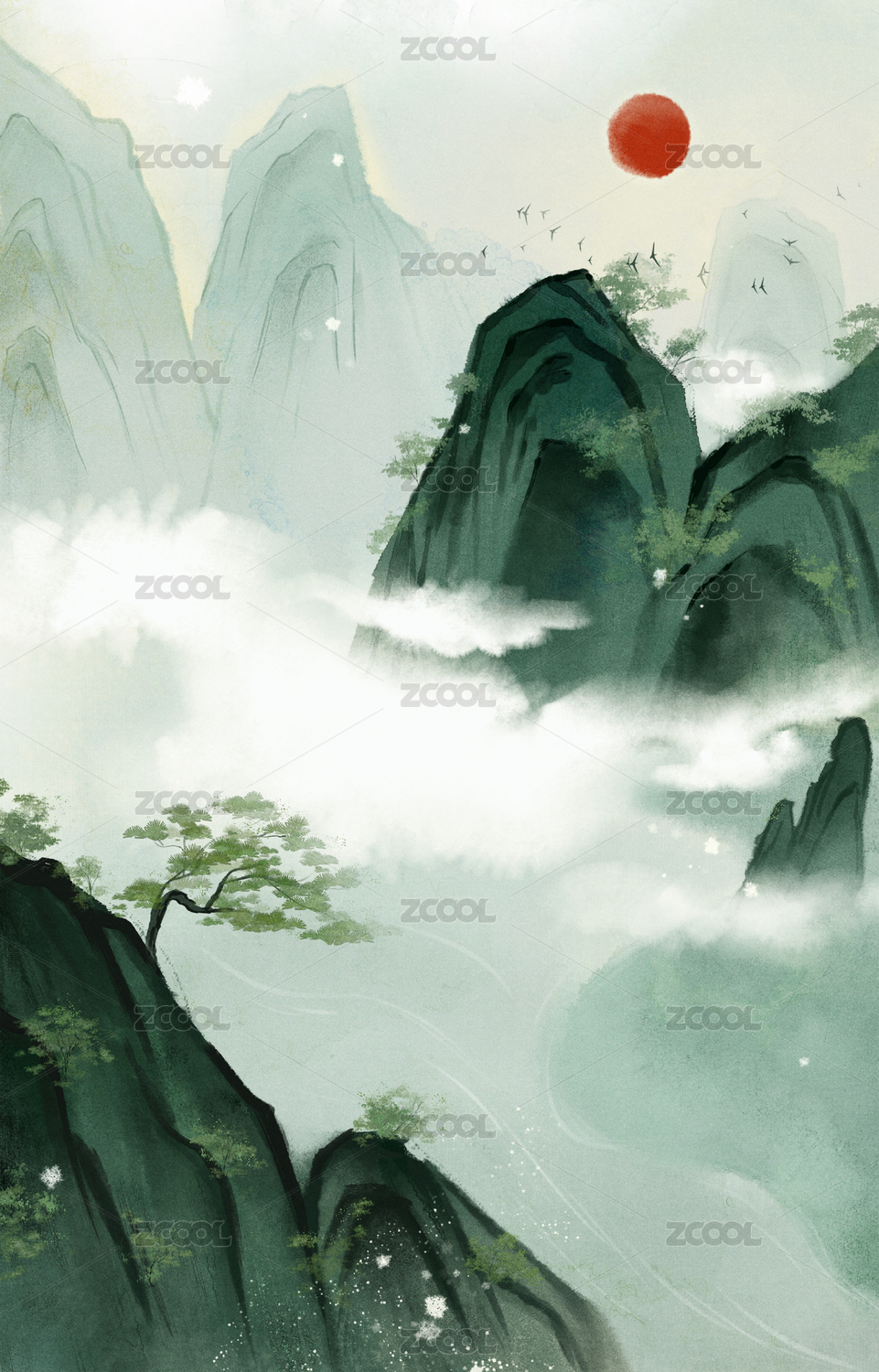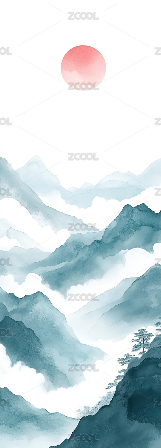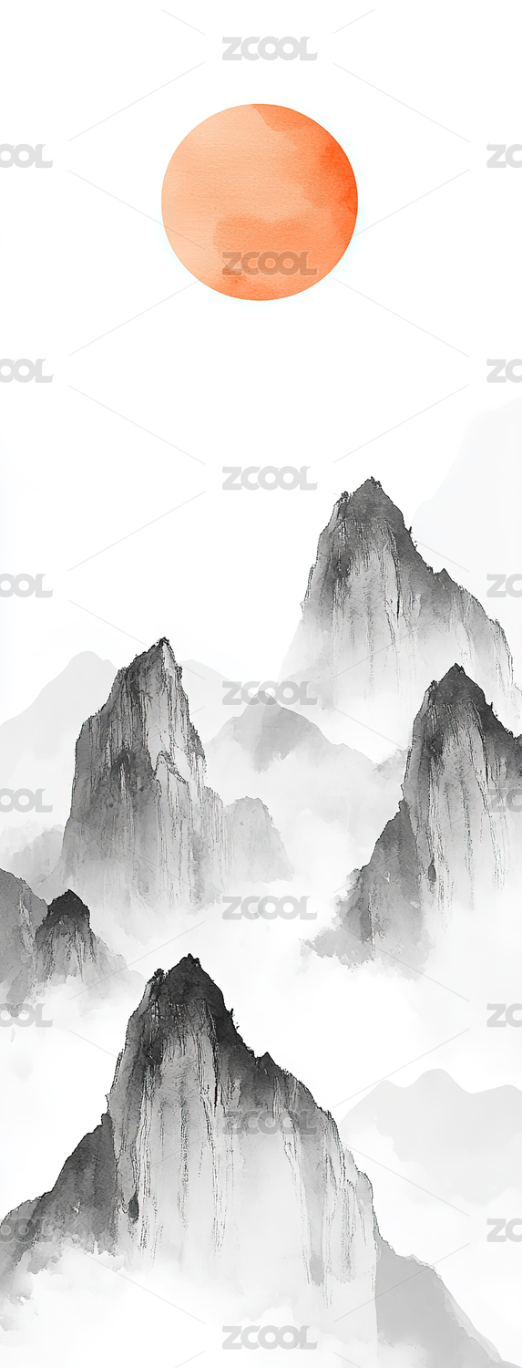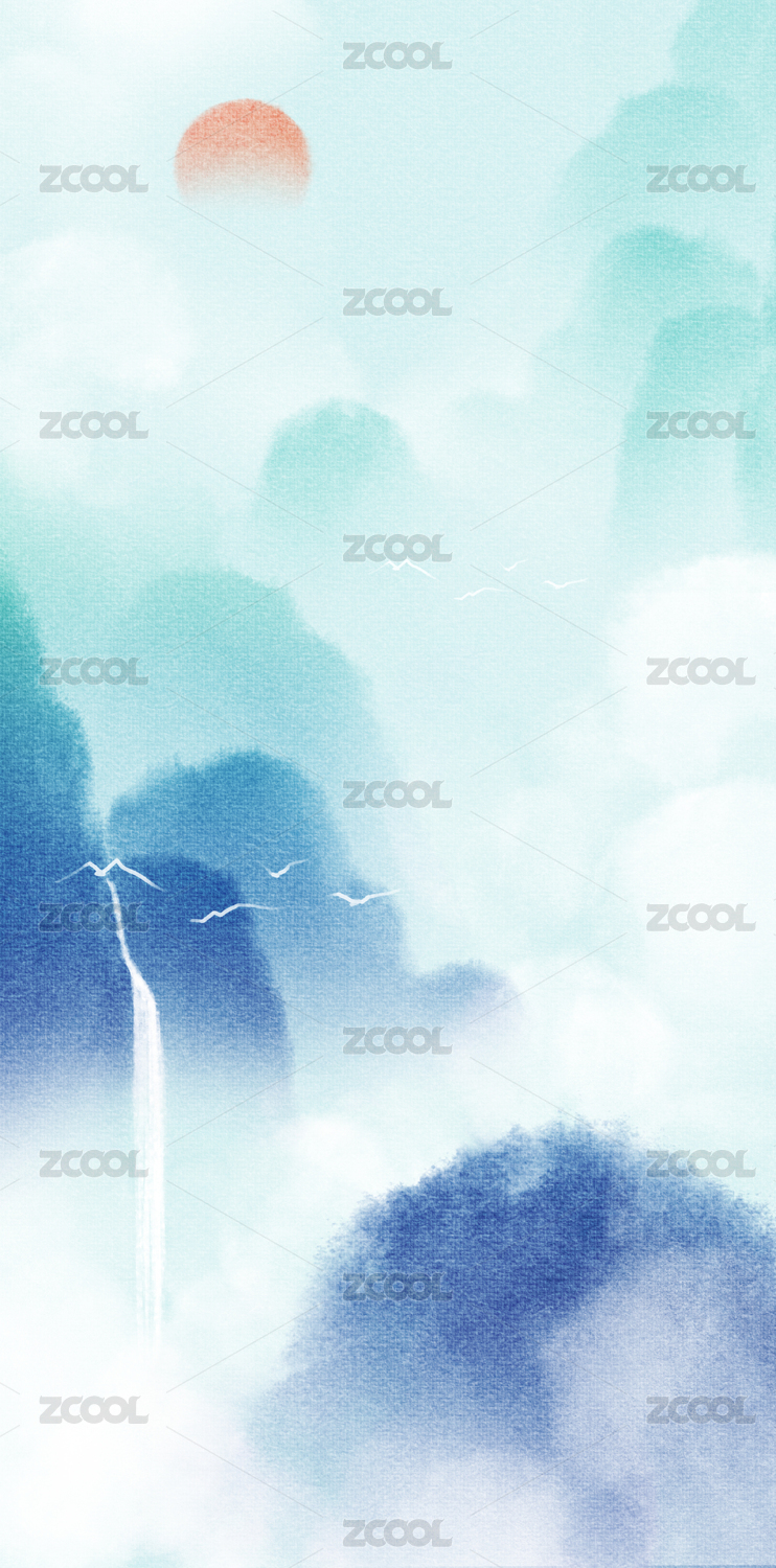 水墨山水风景背景插画