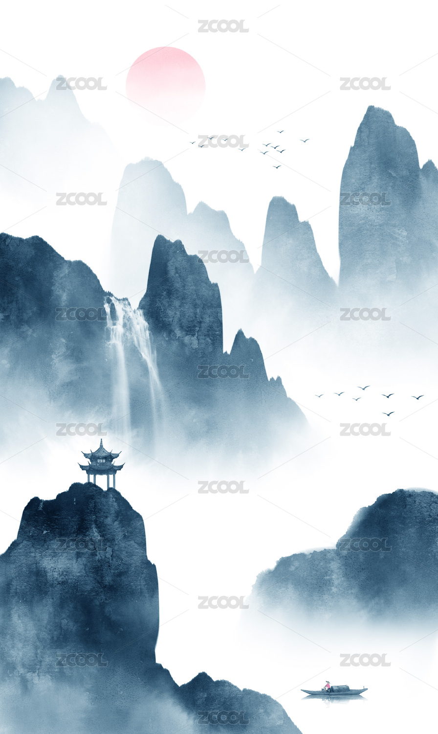 新中式风格山水风景插画
