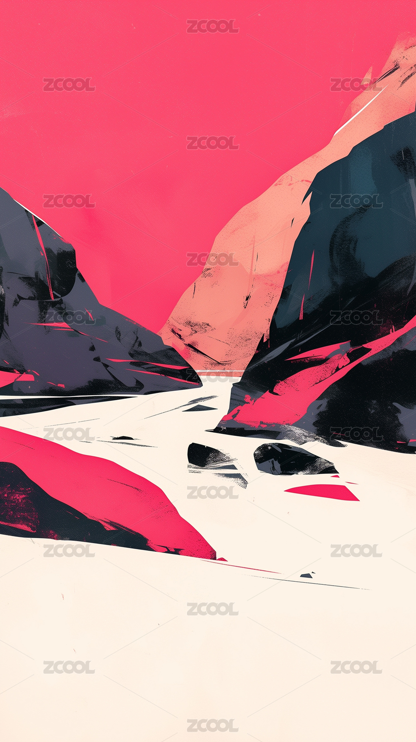 国风彩色梦幻从山崖飞落的瀑布插画绘画水墨