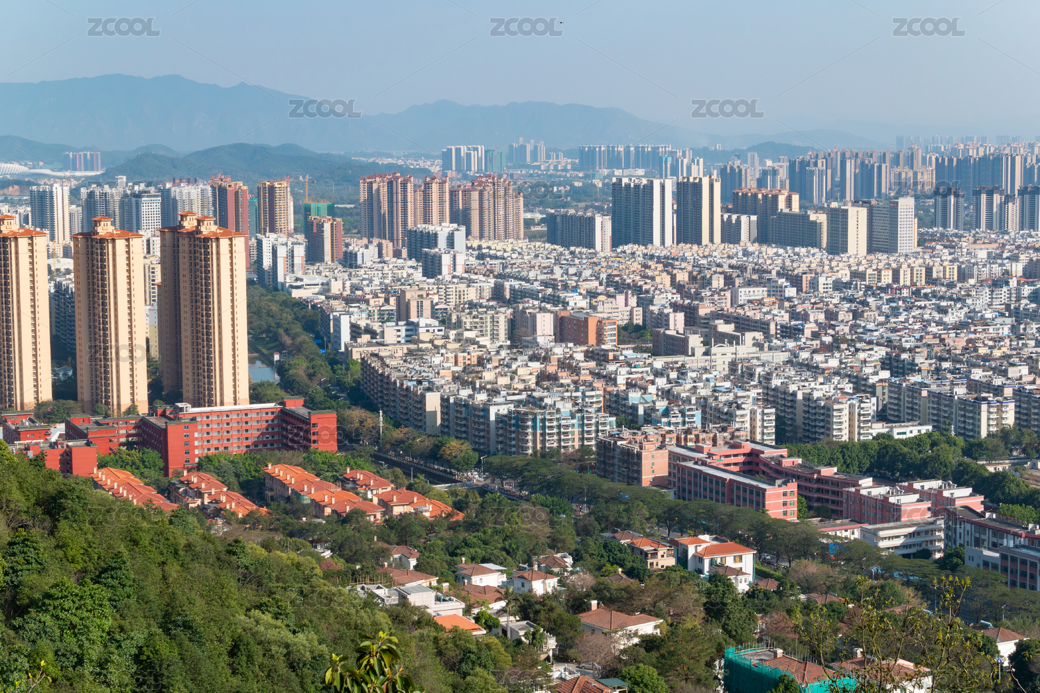 中国广东省深圳市龙岗区平湖建筑群傍晚风光