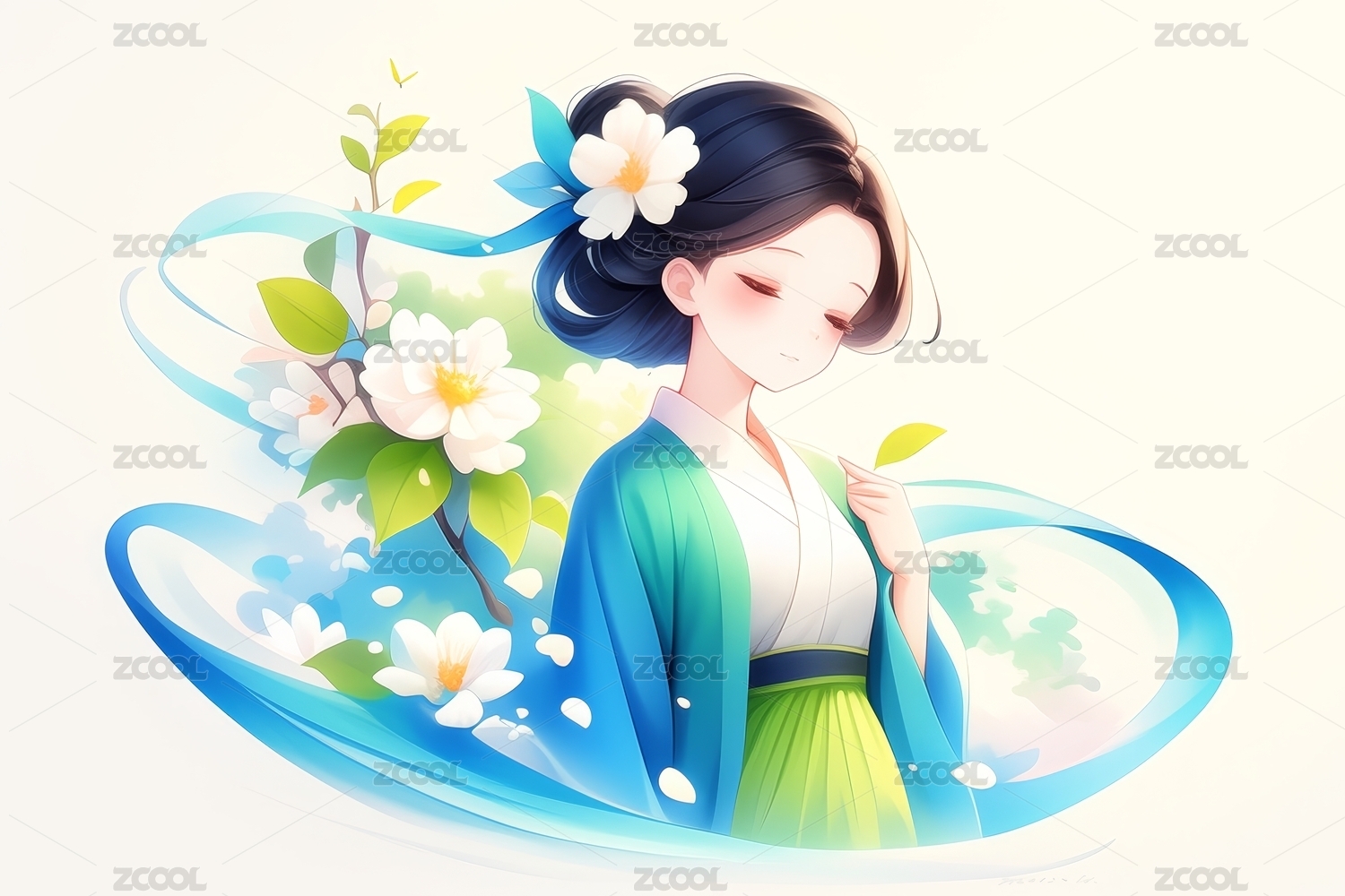 国庆节,古风人物,国花,祖国,十月一,庆祝,植物,古风,国潮,元素