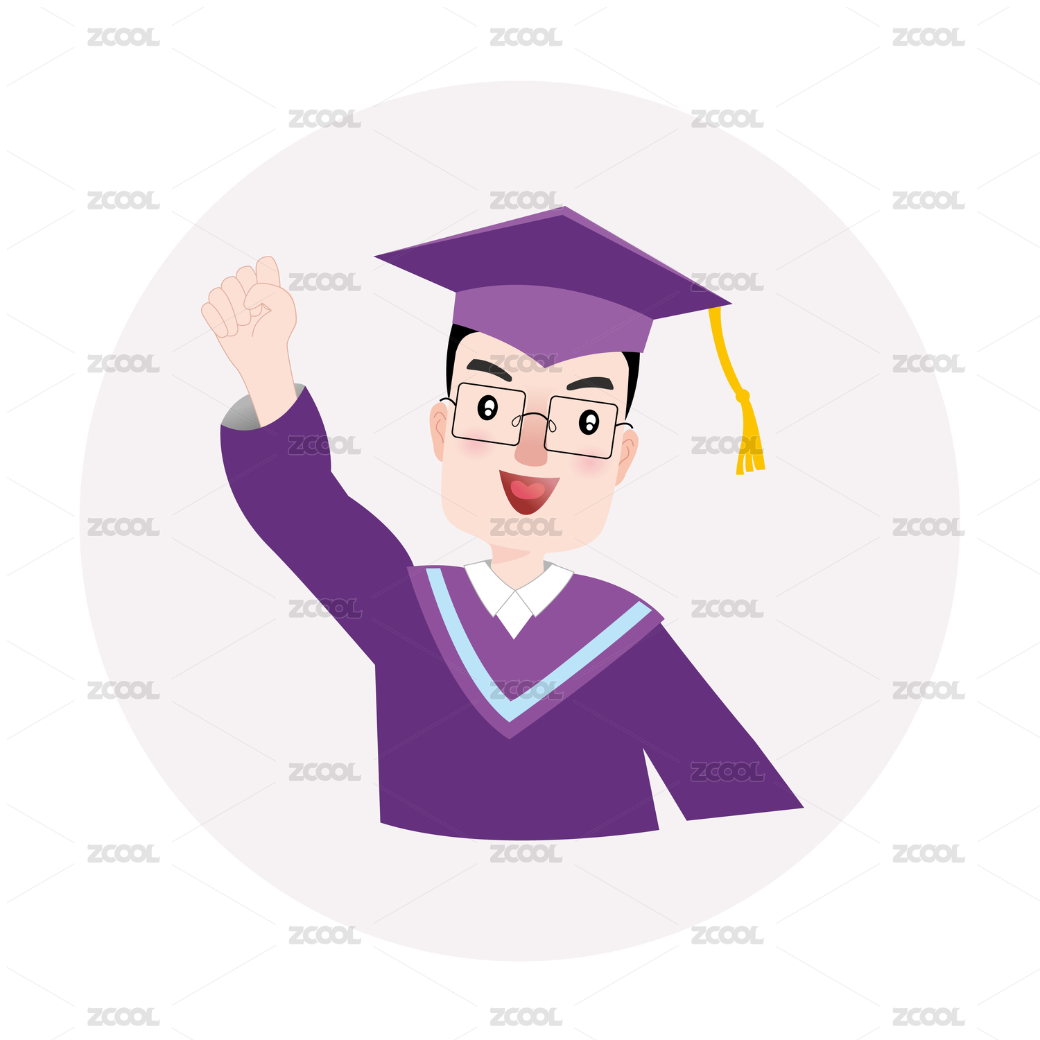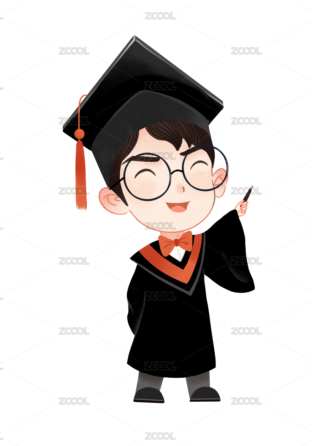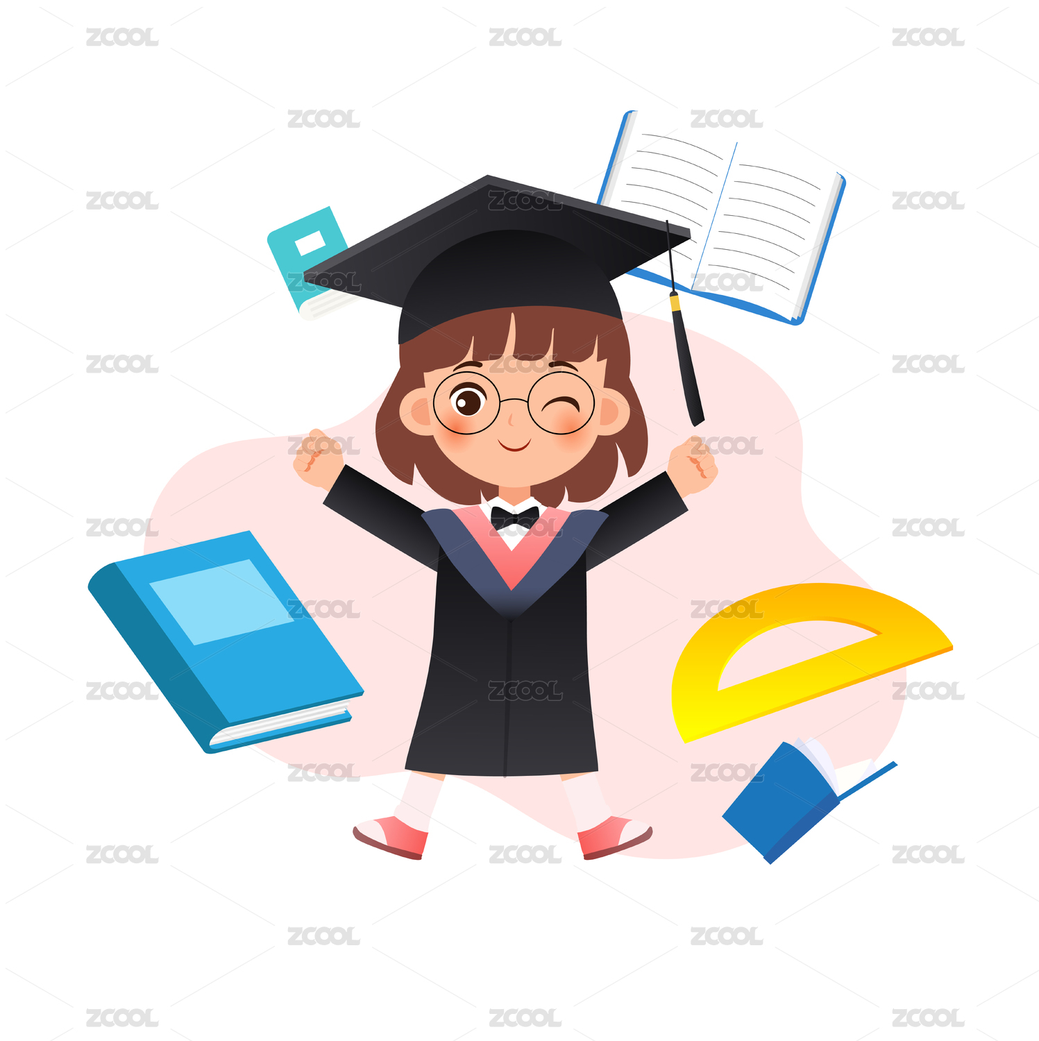 卡通矢量带博士帽穿学士服手拿书卷的毕业学生