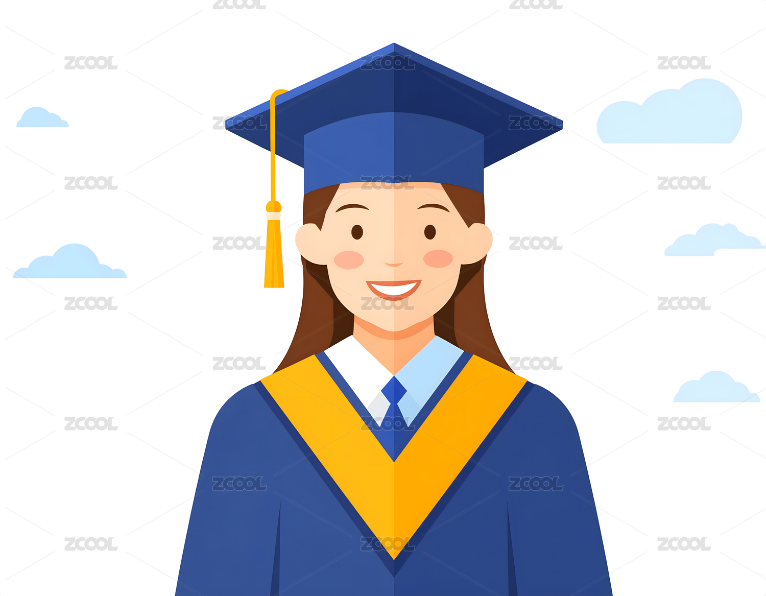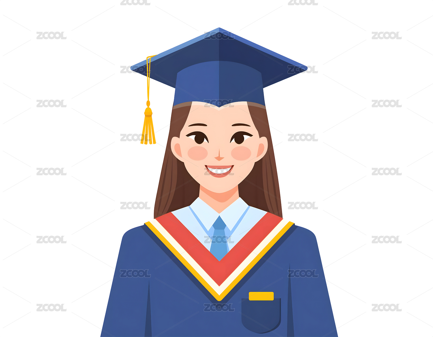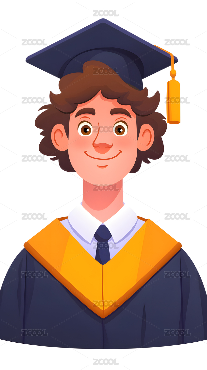 卡通矢量带博士帽穿学士服手拿书卷的毕业学生