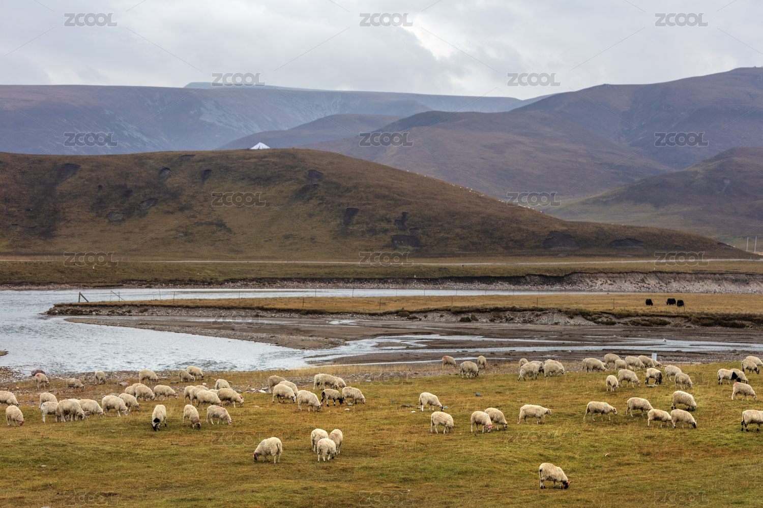 中国西藏山南市贡嘎县羊卓雍措羊湖边羊群