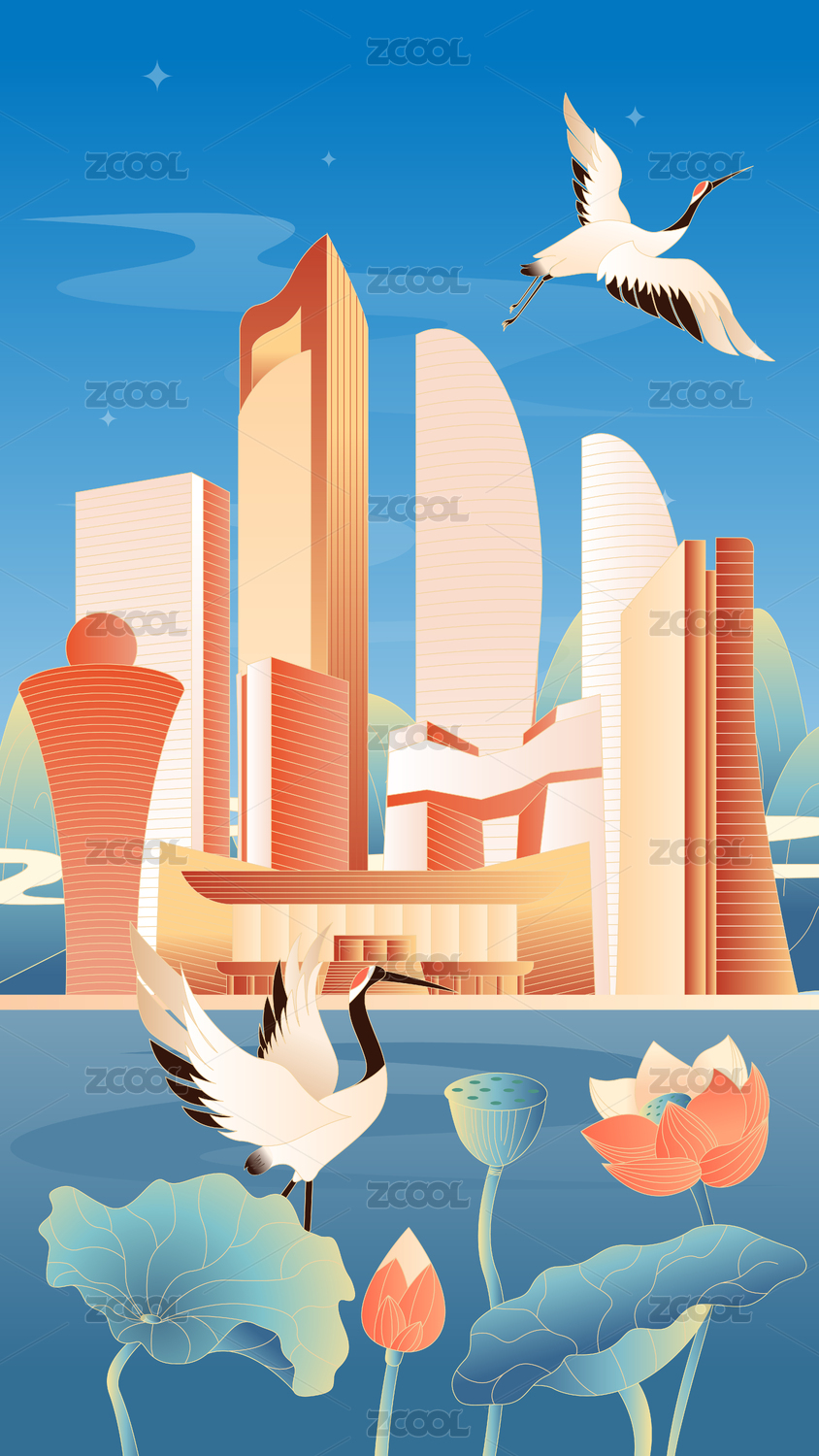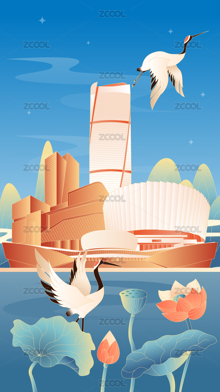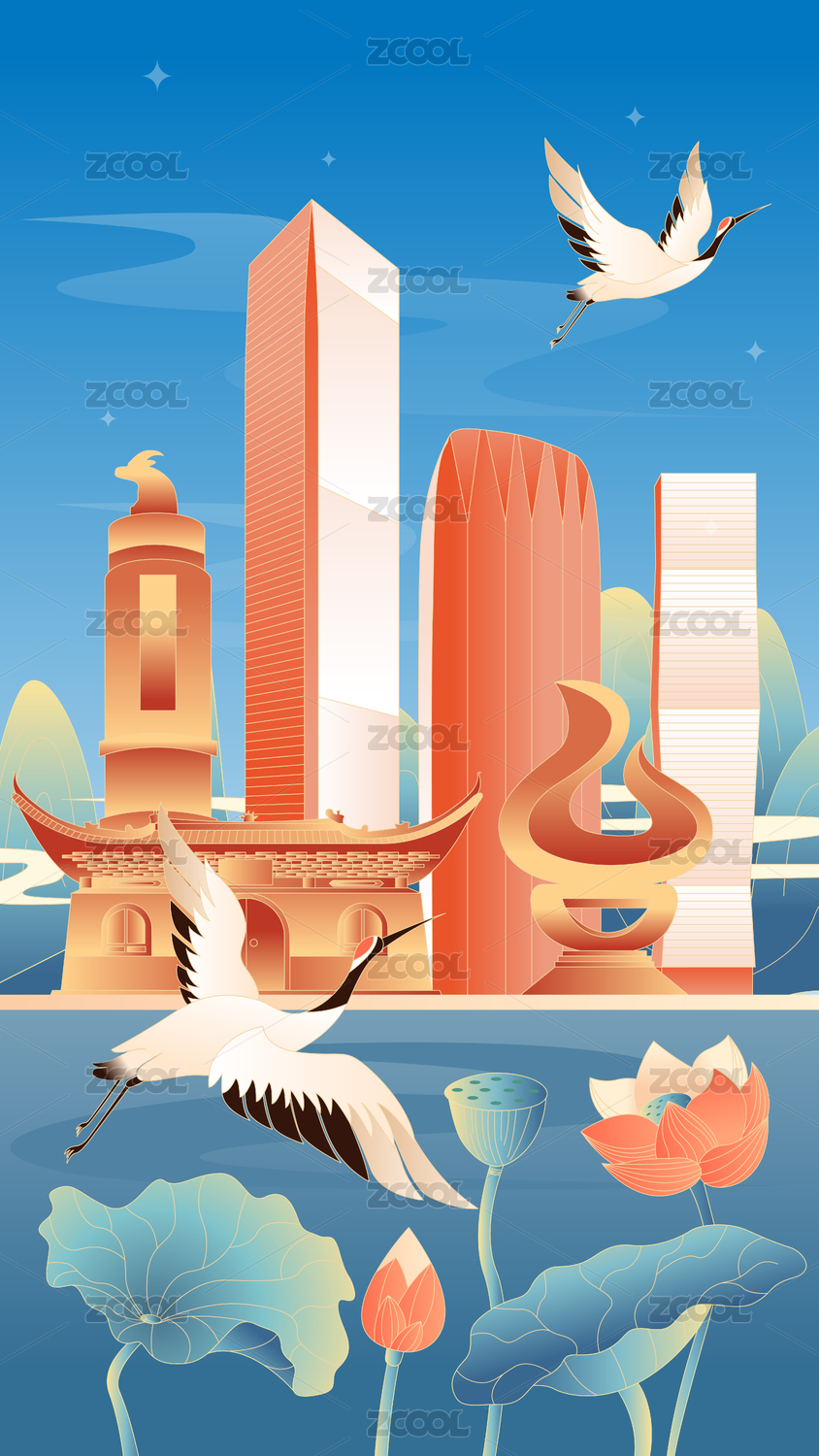 新乡城市国潮竖版插画